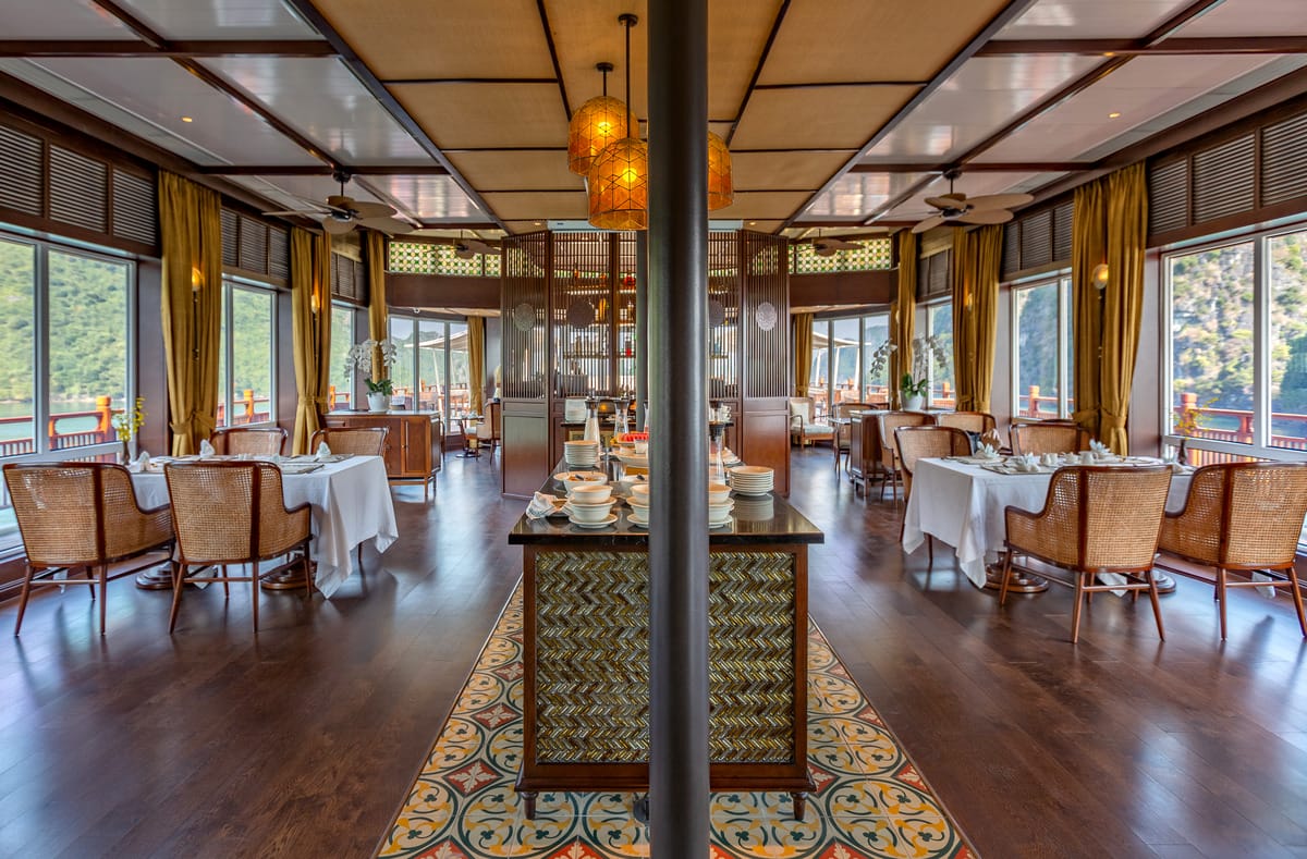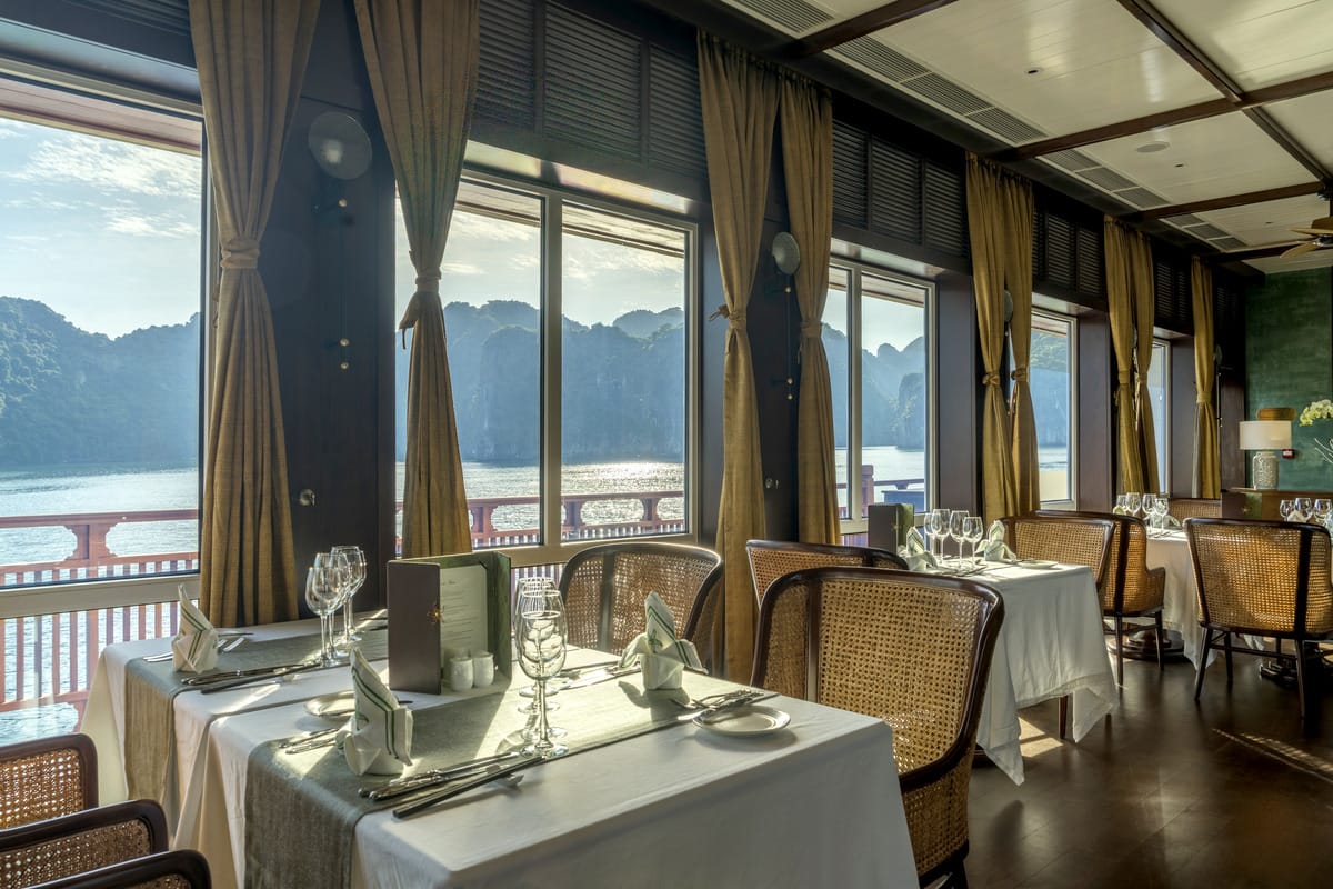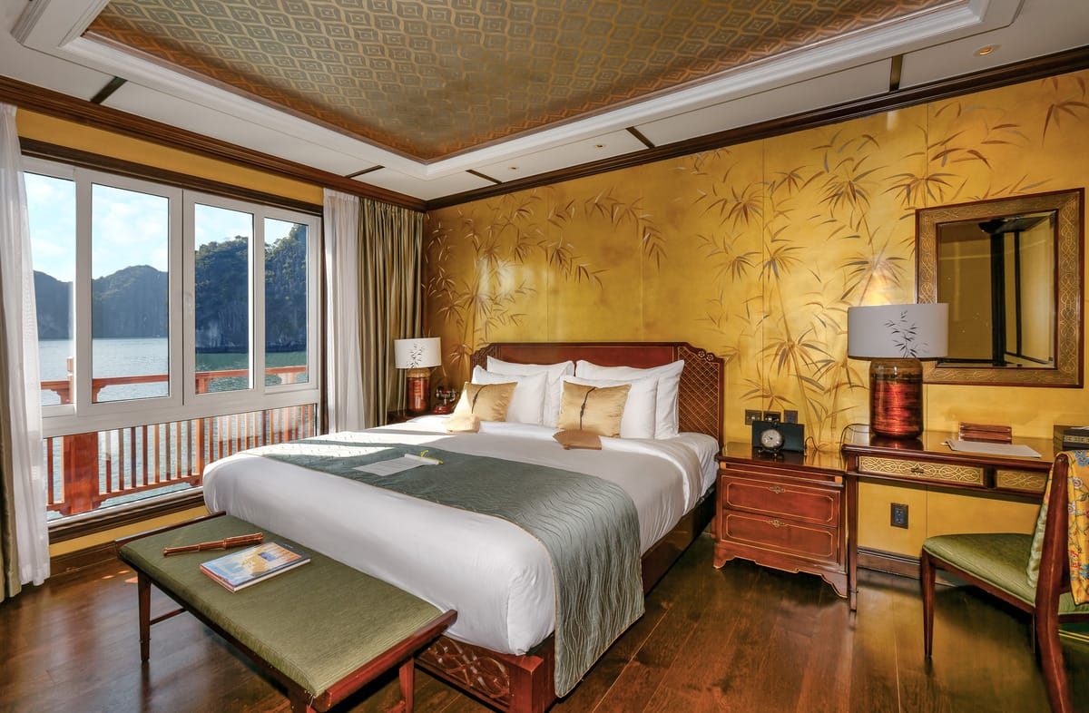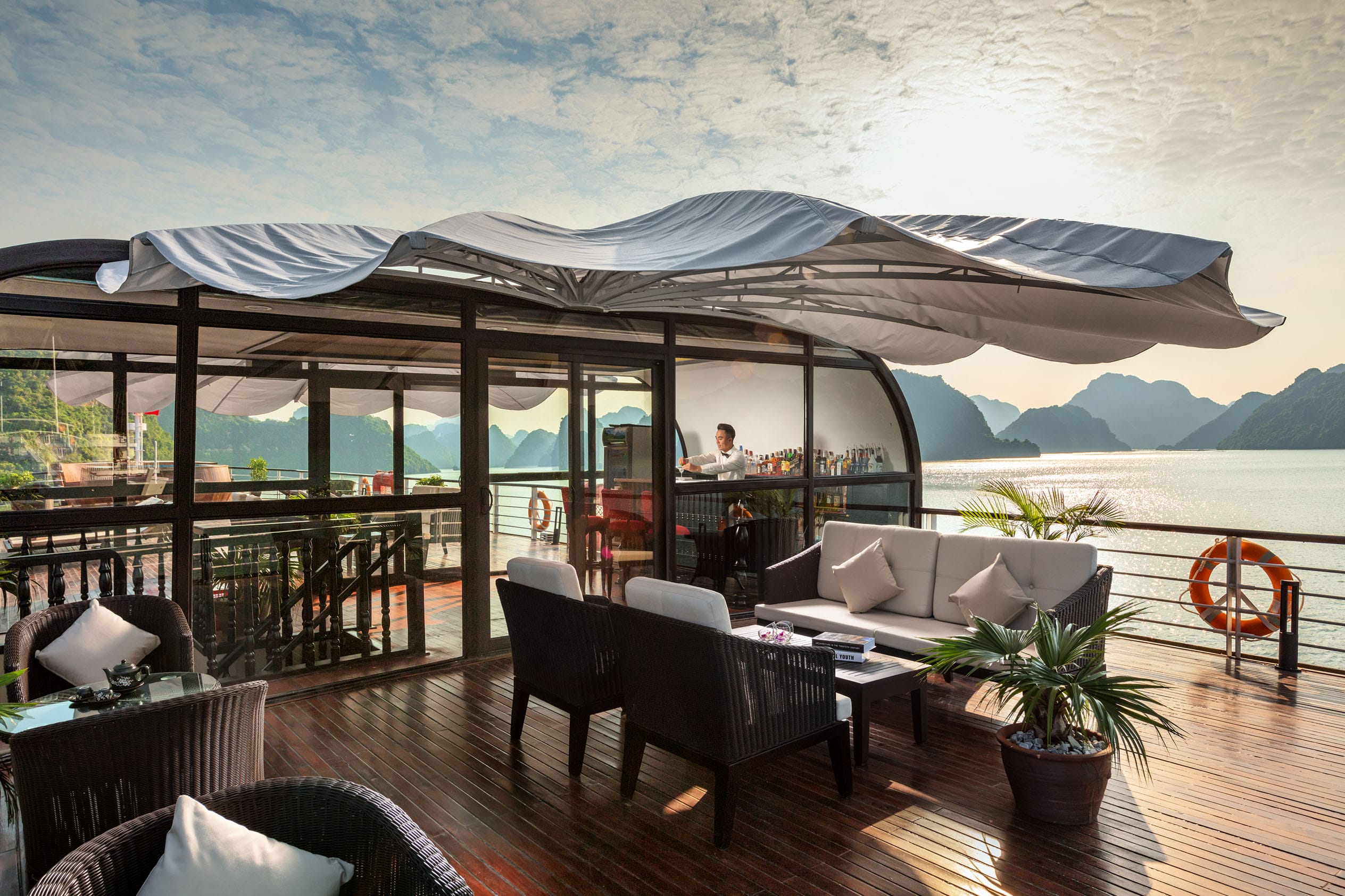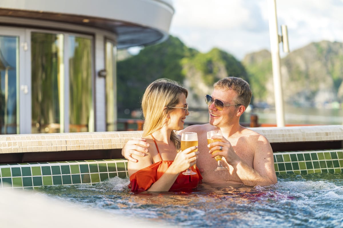 No matter who you are, a first-timer on board or a returner with a heart for Halong Bay cruising, you will want to consider the below fresh-off-the-boat choices. The list here contains all newly operated cruises, which include on-site vessels that updated their service, facilities, and itinerary every year to meet guests’ requirements, and the recently built ships with up-to-date features and a new less-traveled route to add to the collection of top-rated cruises. At first glance, the newest cruises will promise a charming exterior and unique design, some even own amenities such as a Jacuzzi, sauna, or mini-golf course. However, do not forget the activities stored in their sleeves, exploring the new caves and karst formations, visiting new places off the map, and joining fusion cooking classes, for example. Have you made up your mind yet? Let us help you.