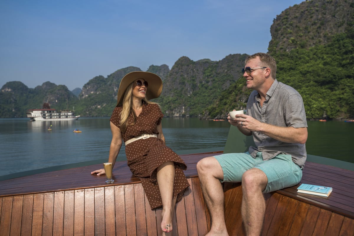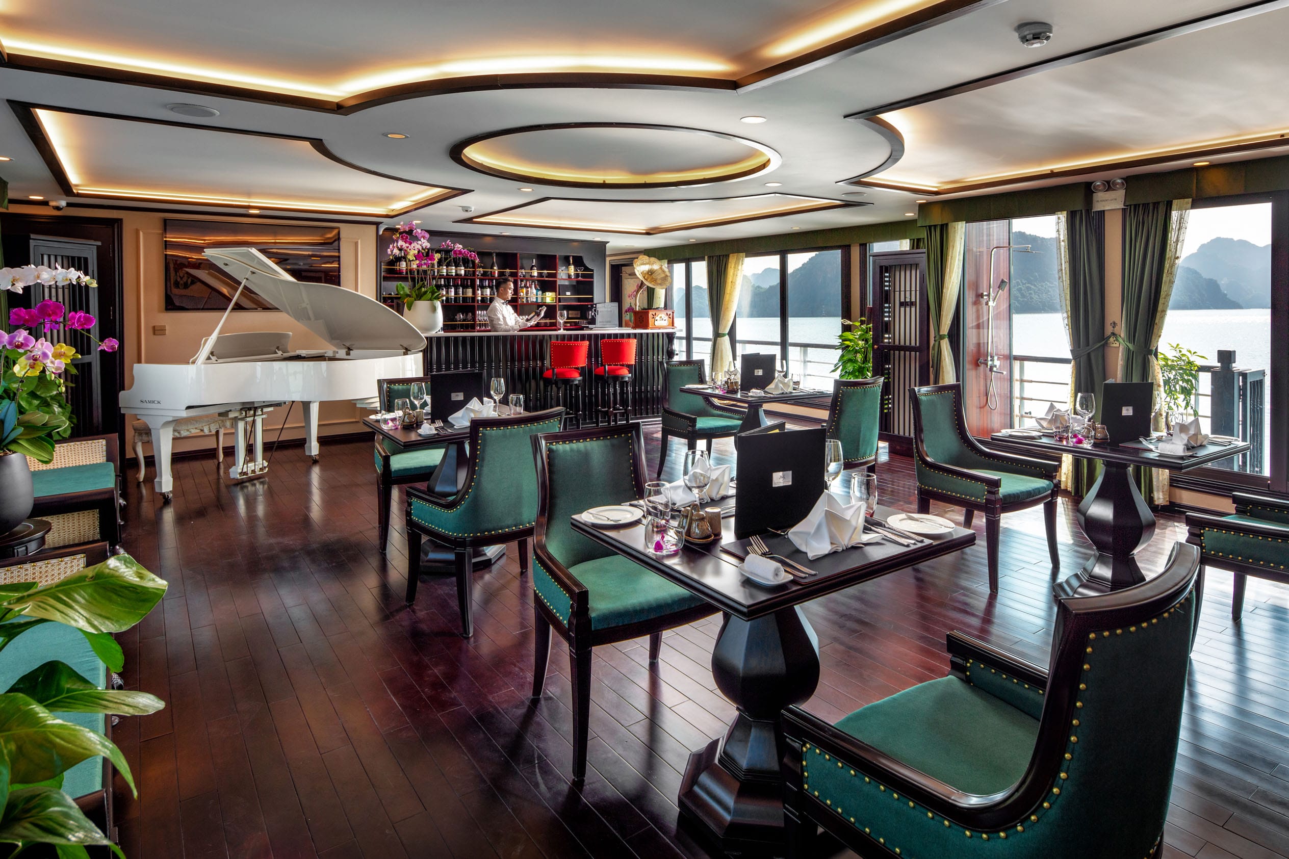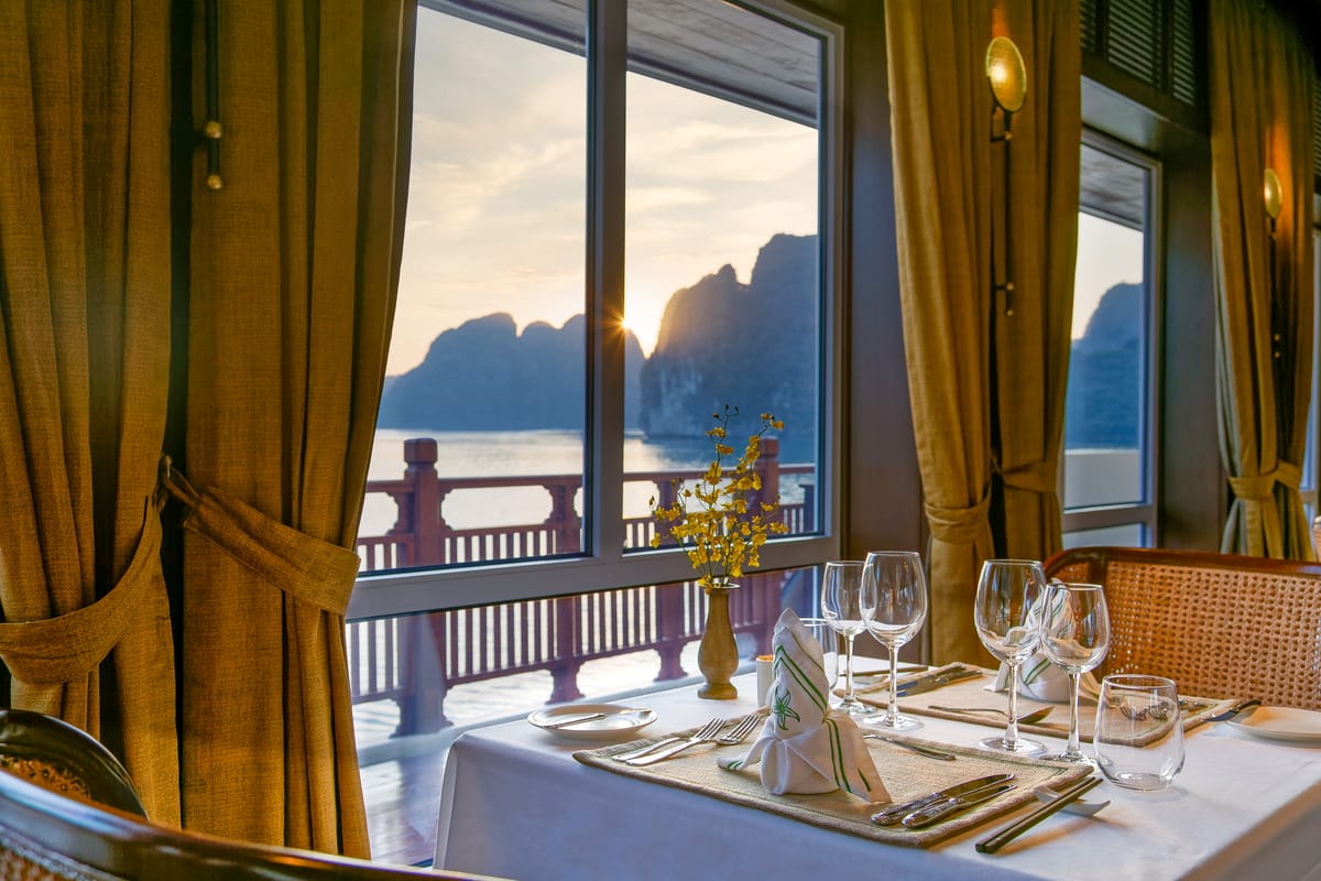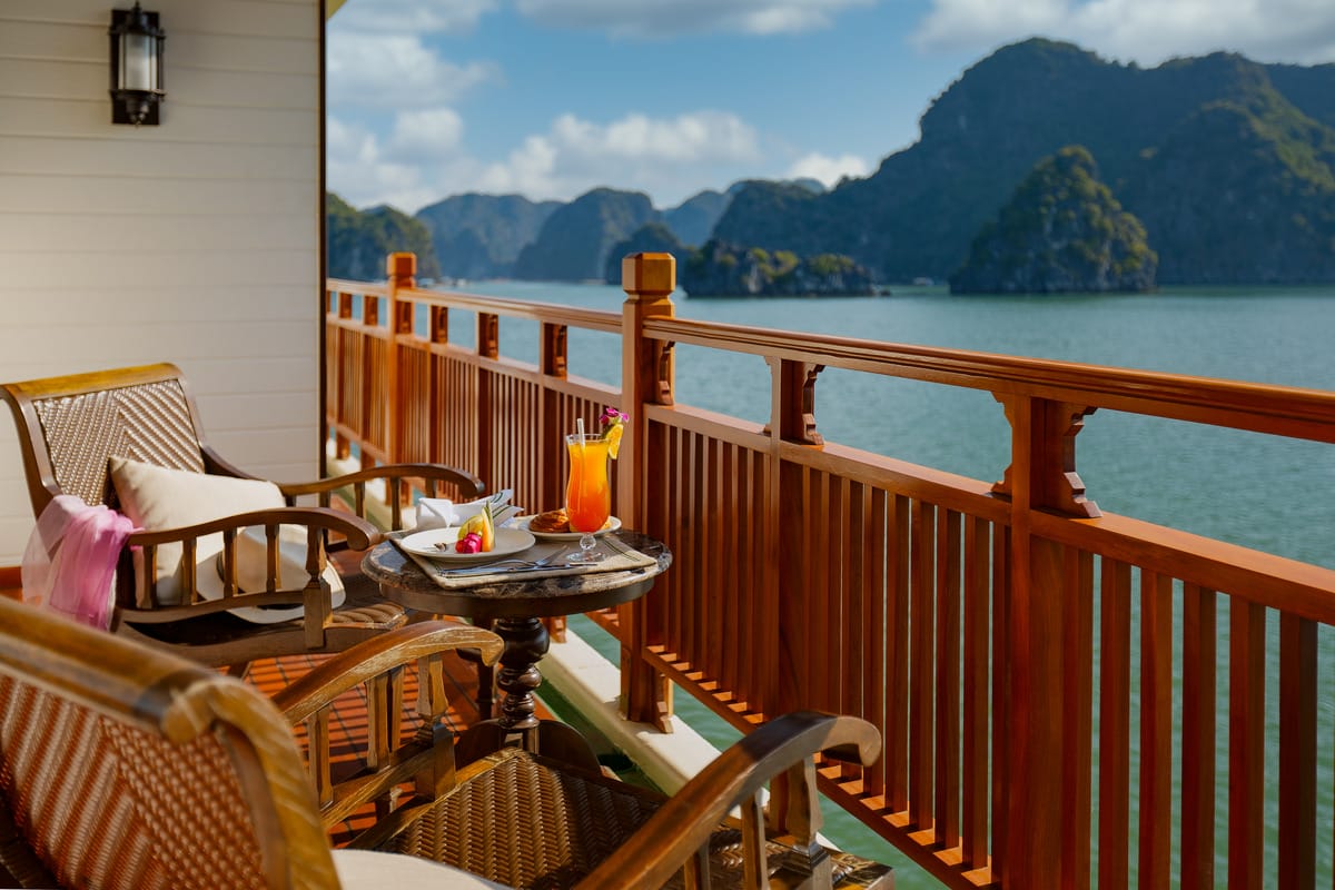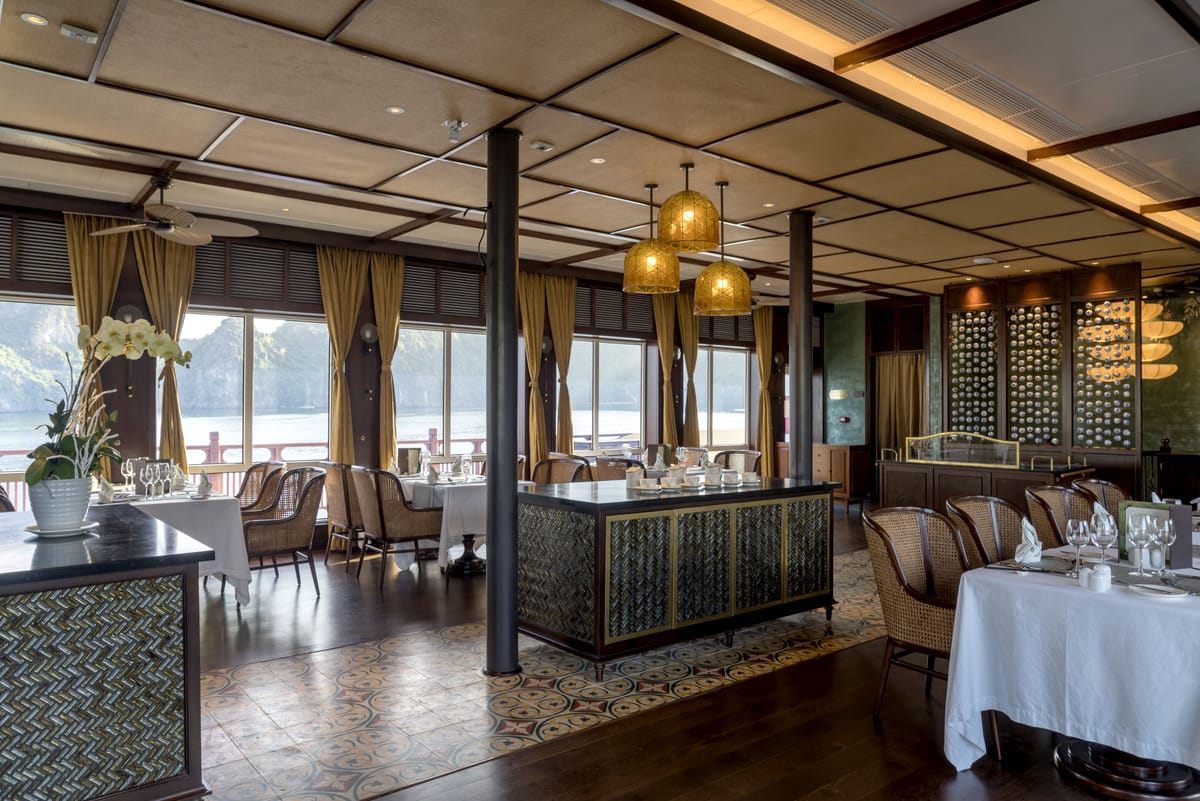 No matter who you are, a first-timer on board or a returner with a heart for Halong Bay cruising, you will want to consider the below fresh-off-the-boat choices. The list here contains all newly operated cruises, which include on-site vessels that updated their service, facilities, and itinerary every year to meet guests’ requirements, and the recently built ships with up-to-date features and a new less-traveled route to add to the collection of top-rated cruises. At first glance, the newest cruises will promise a charming exterior and unique design, some even own amenities such as a Jacuzzi, sauna, or mini-golf course. However, do not forget the activities stored in their sleeves, exploring the new caves and karst formations, visiting new places off the map, and joining fusion cooking classes, for example. Have you made up your mind yet? Let us help you.