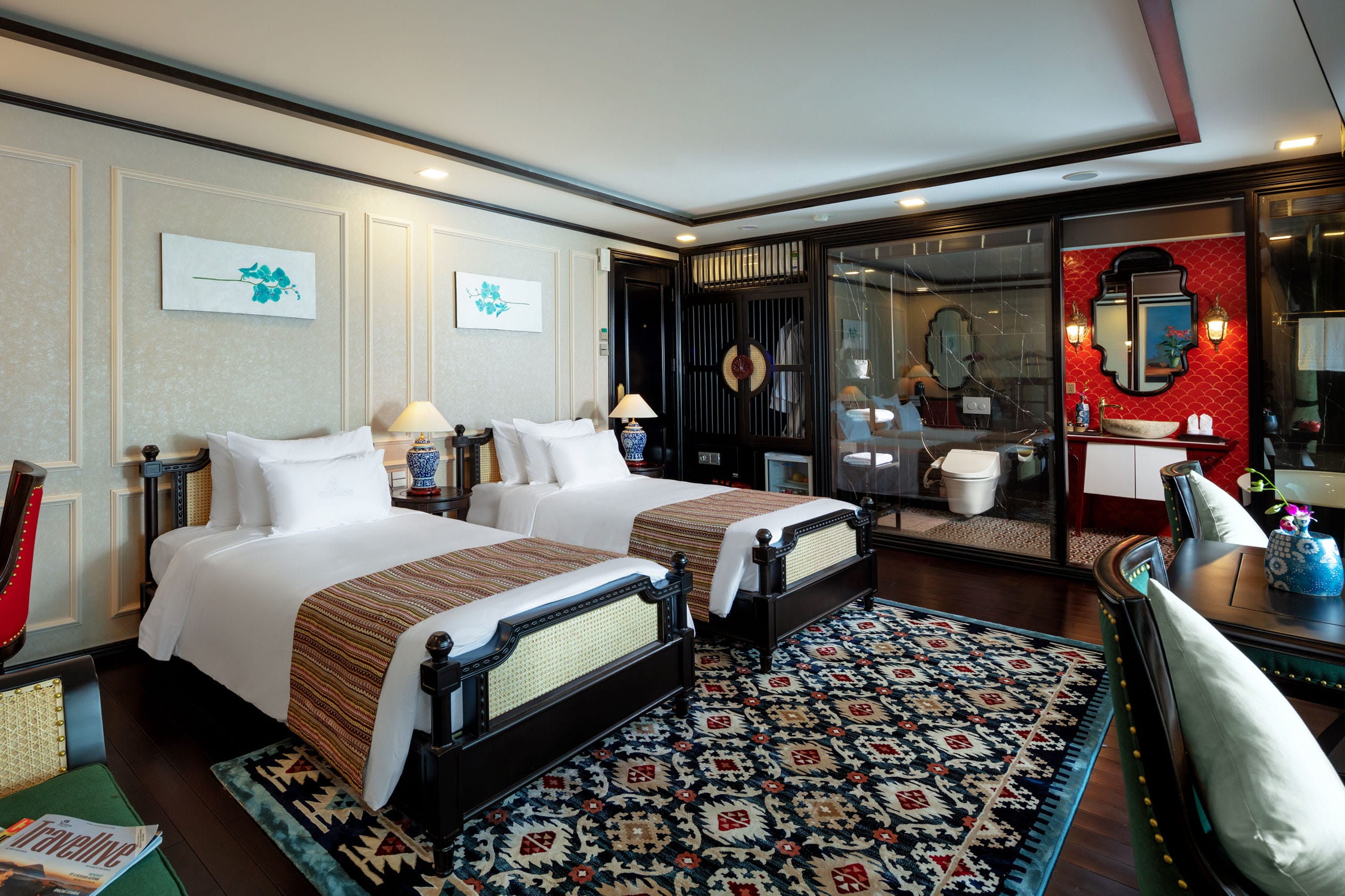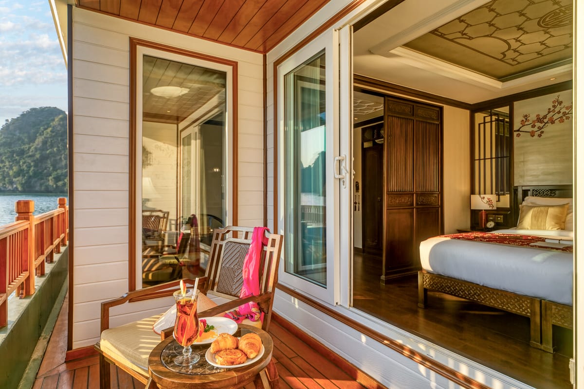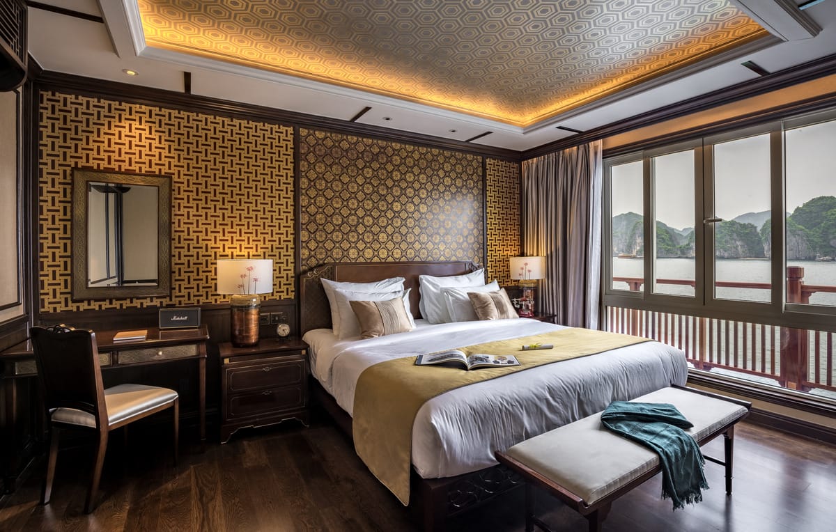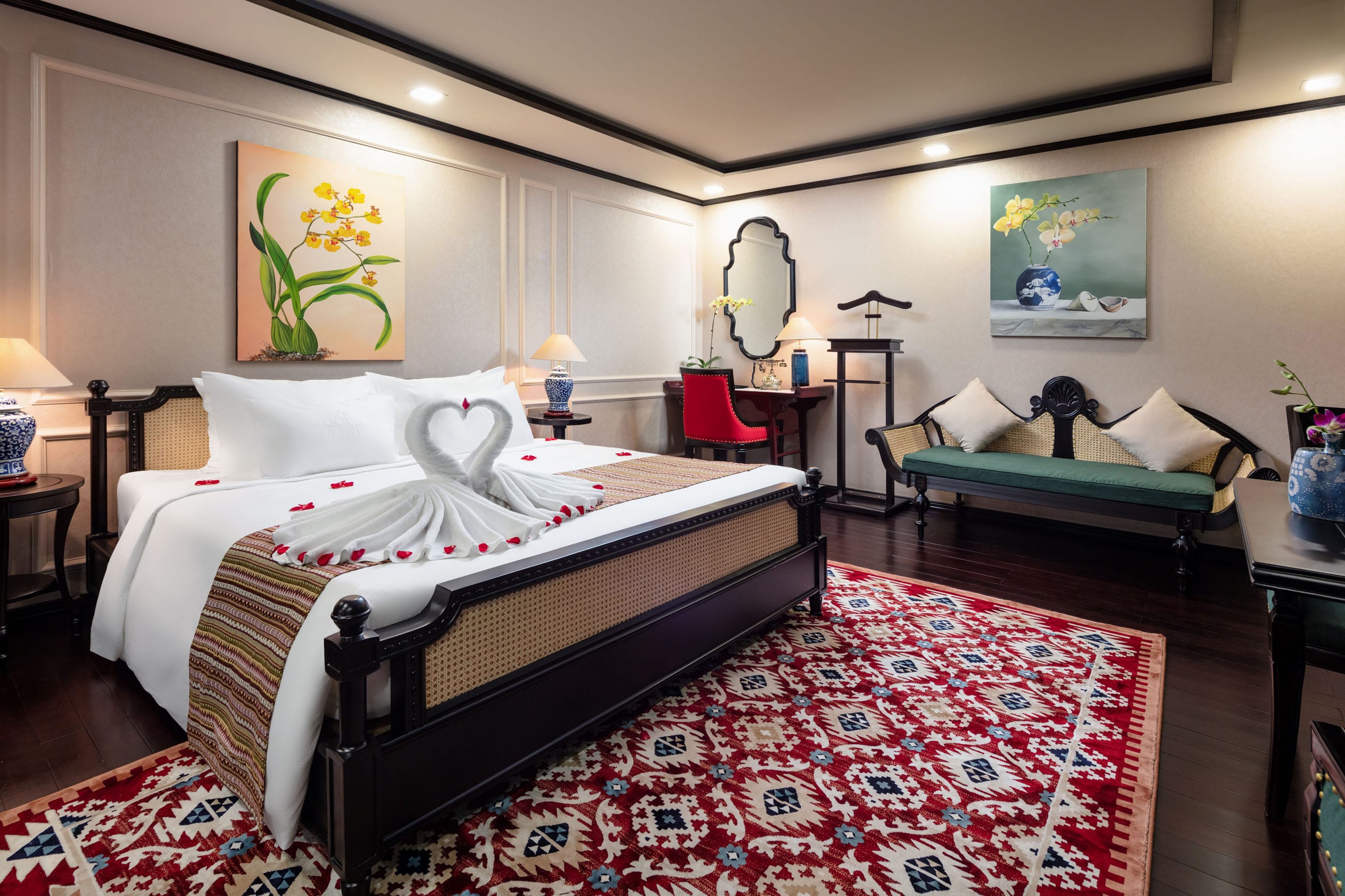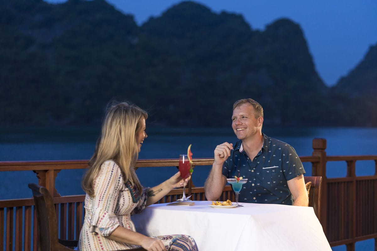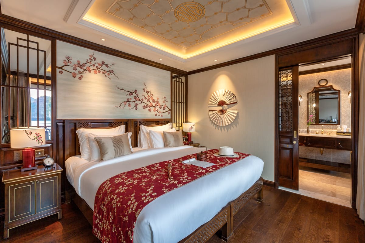 No matter who you are, a first-timer on board or a returner with a heart for Halong Bay cruising, you will want to consider the below fresh-off-the-boat choices. The list here contains all newly operated cruises, which include on-site vessels that updated their service, facilities, and itinerary every year to meet guests’ requirements, and the recently built ships with up-to-date features and a new less-traveled route to add to the collection of top-rated cruises. At first glance, the newest cruises will promise a charming exterior and unique design, some even own amenities such as a Jacuzzi, sauna, or mini-golf course. However, do not forget the activities stored in their sleeves, exploring the new caves and karst formations, visiting new places off the map, and joining fusion cooking classes, for example. Have you made up your mind yet? Let us help you.