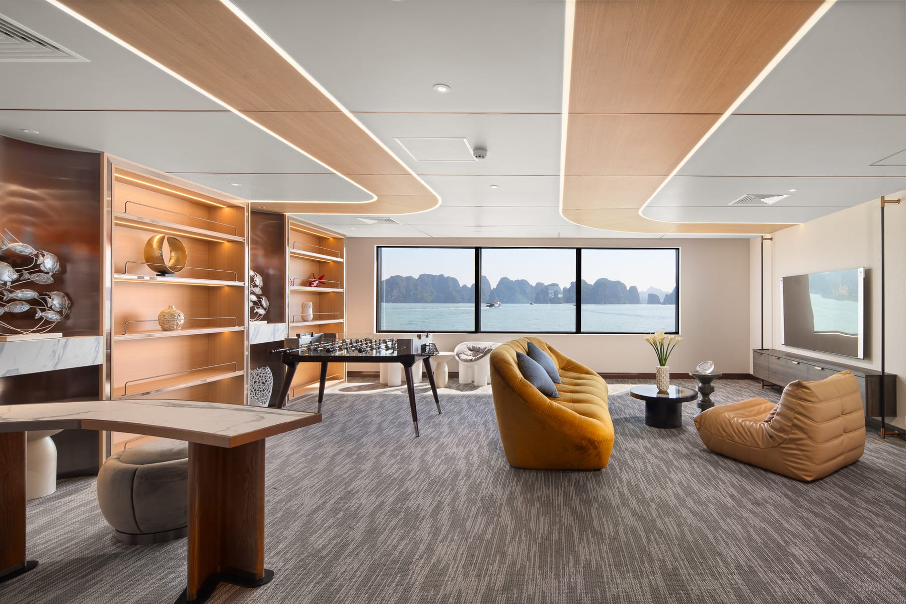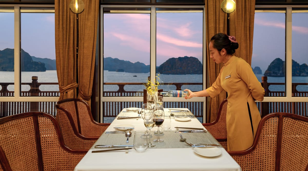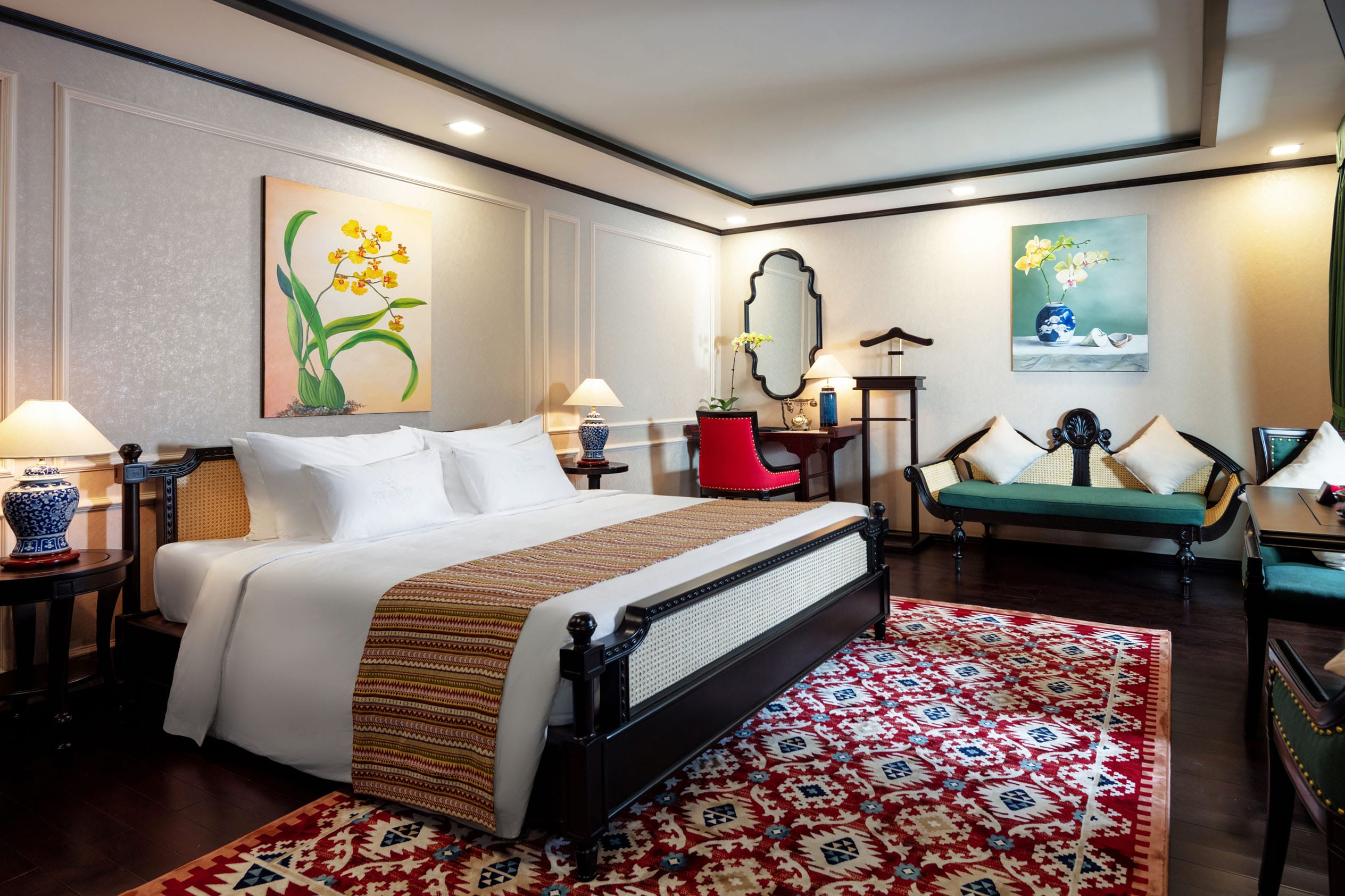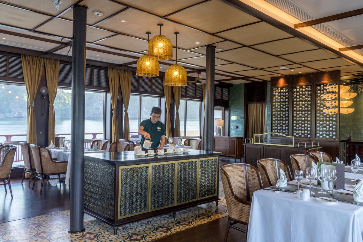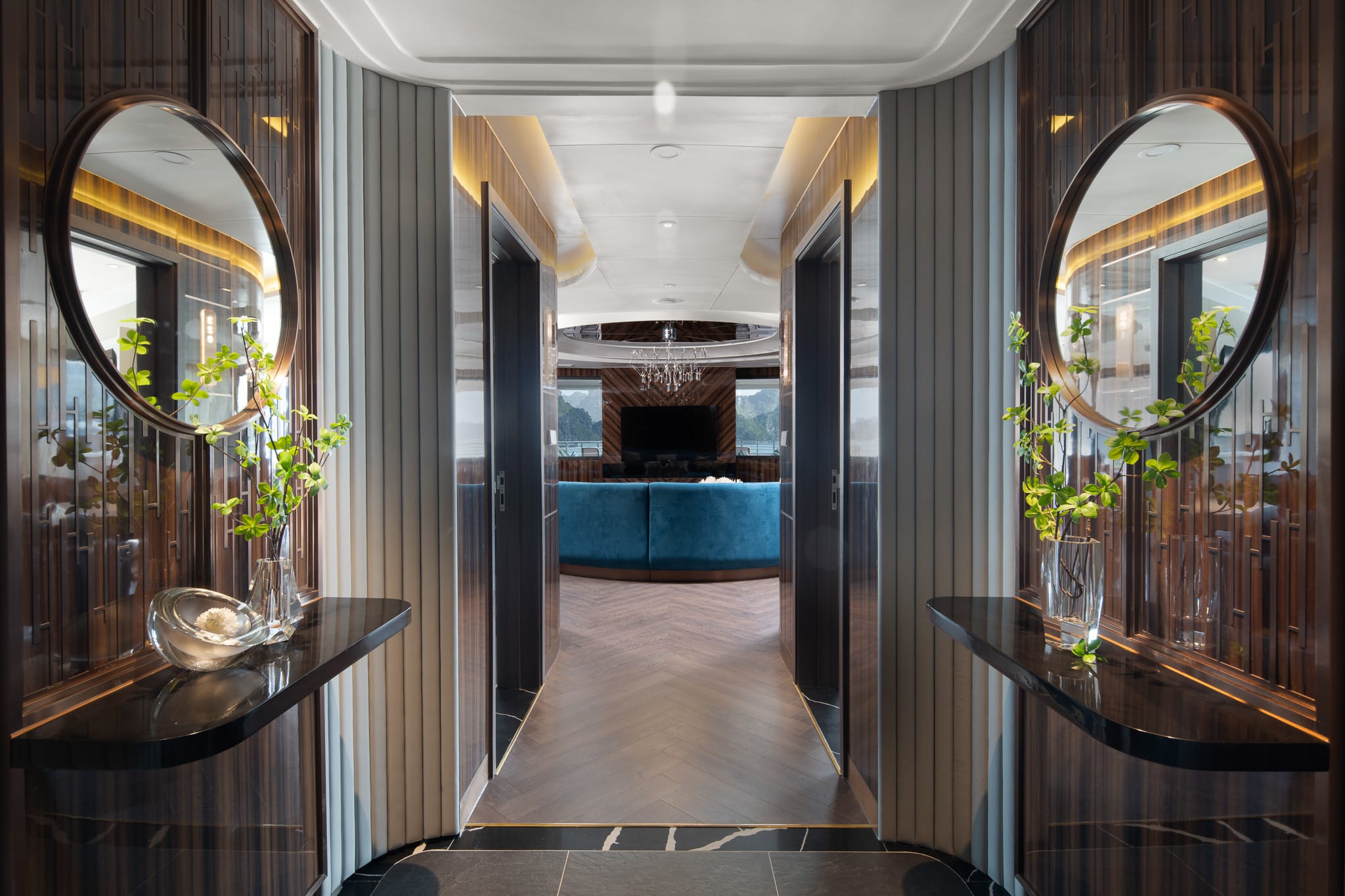 No matter who you are, a first-timer on board or a returner with a heart for Halong Bay cruising, you will want to consider the below fresh-off-the-boat choices. The list here contains all newly operated cruises, which include on-site vessels that updated their service, facilities, and itinerary every year to meet guests’ requirements, and the recently built ships with up-to-date features and a new less-traveled route to add to the collection of top-rated cruises. At first glance, the newest cruises will promise a charming exterior and unique design, some even own amenities such as a Jacuzzi, sauna, or mini-golf course. However, do not forget the activities stored in their sleeves, exploring the new caves and karst formations, visiting new places off the map, and joining fusion cooking classes, for example. Have you made up your mind yet? Let us help you.