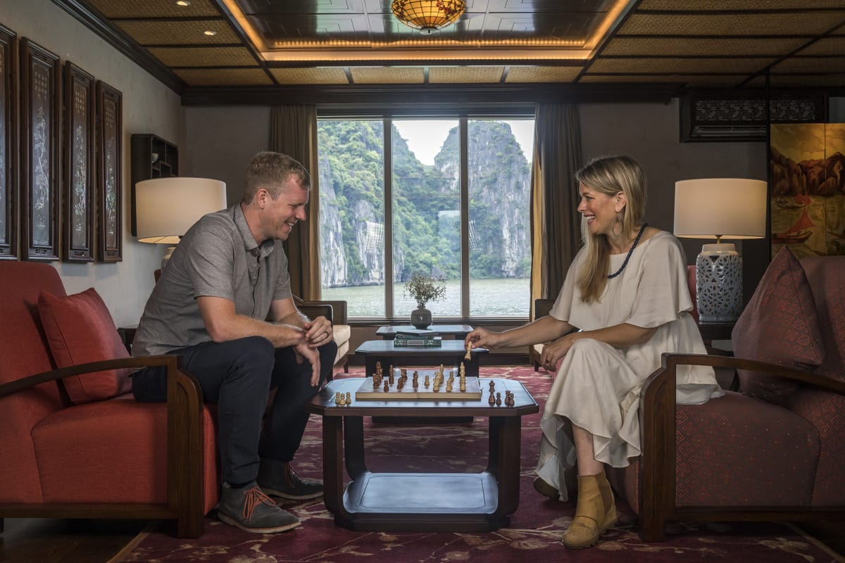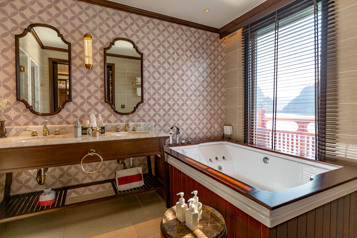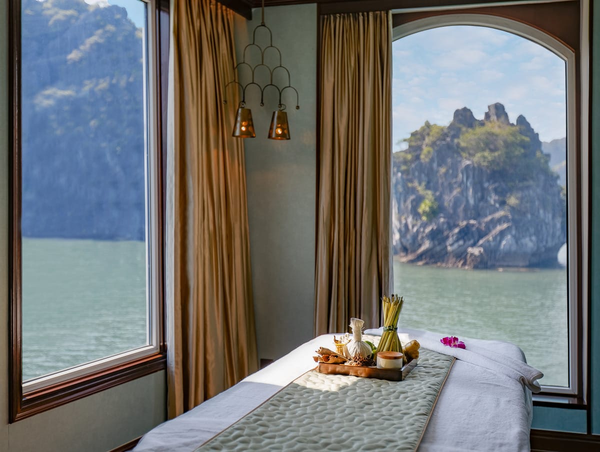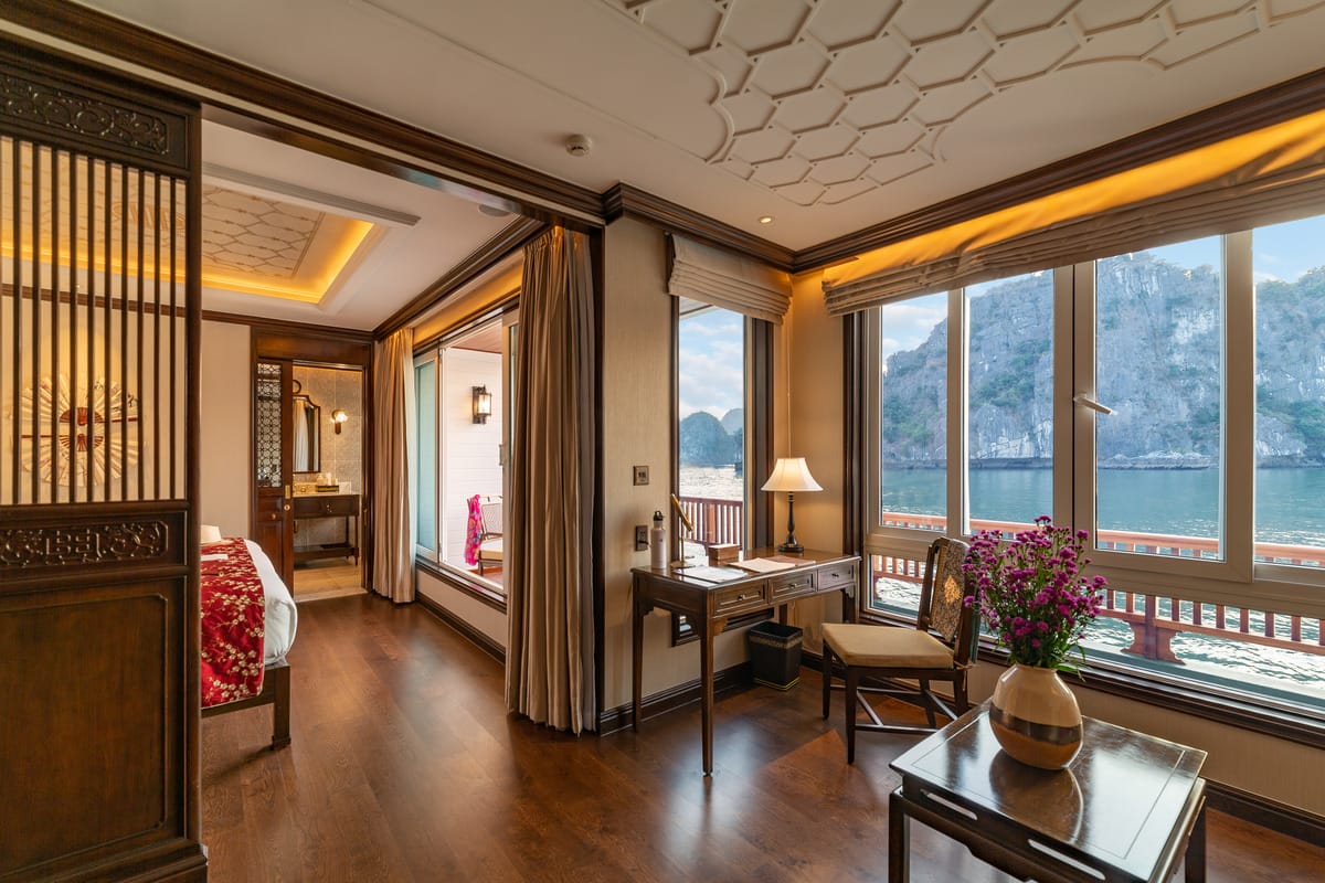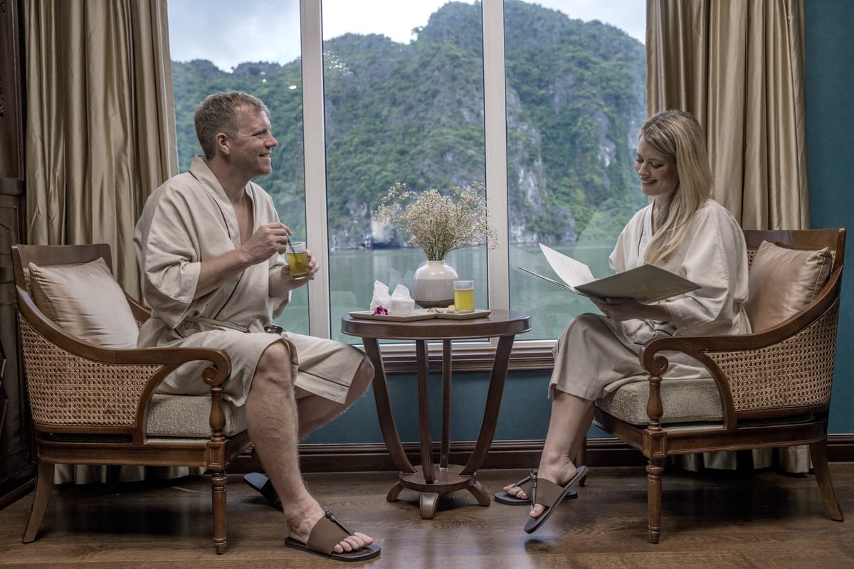 No matter who you are, a first-timer on board or a returner with a heart for Halong Bay cruising, you will want to consider the below fresh-off-the-boat choices. The list here contains all newly operated cruises, which include on-site vessels that updated their service, facilities, and itinerary every year to meet guests’ requirements, and the recently built ships with up-to-date features and a new less-traveled route to add to the collection of top-rated cruises. At first glance, the newest cruises will promise a charming exterior and unique design, some even own amenities such as a Jacuzzi, sauna, or mini-golf course. However, do not forget the activities stored in their sleeves, exploring the new caves and karst formations, visiting new places off the map, and joining fusion cooking classes, for example. Have you made up your mind yet? Let us help you.