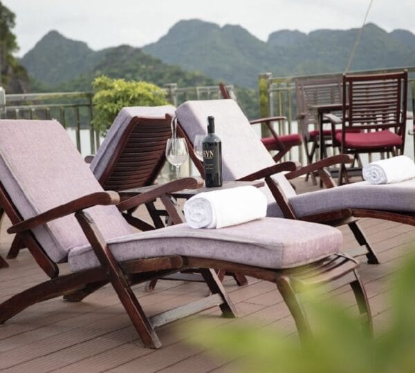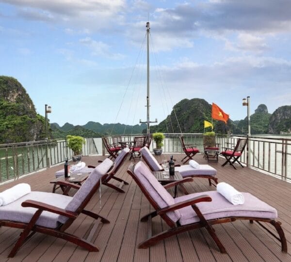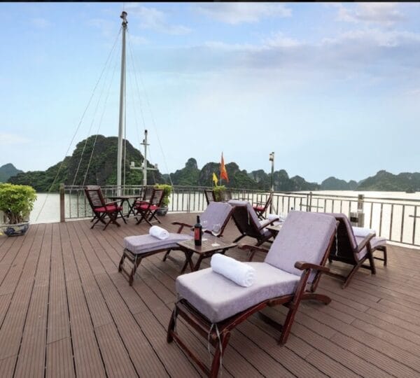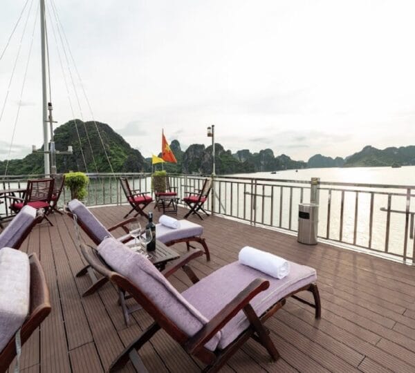 08:30-09:30 Back on the ship, you can rest in your room, sunbathe on the sundeck, take photos of Halong Bay