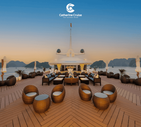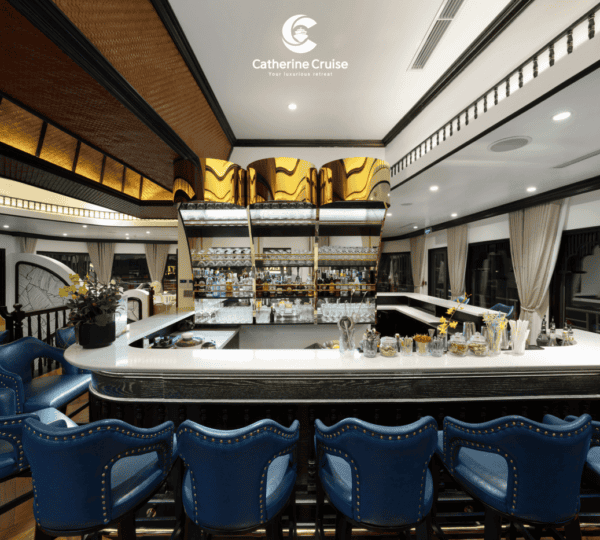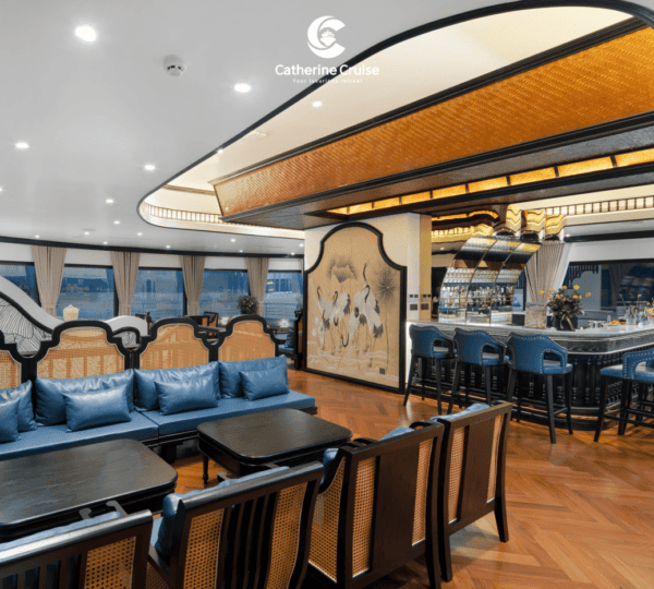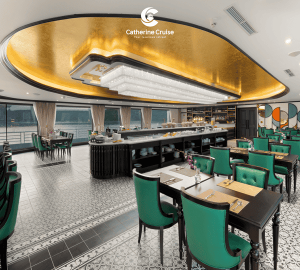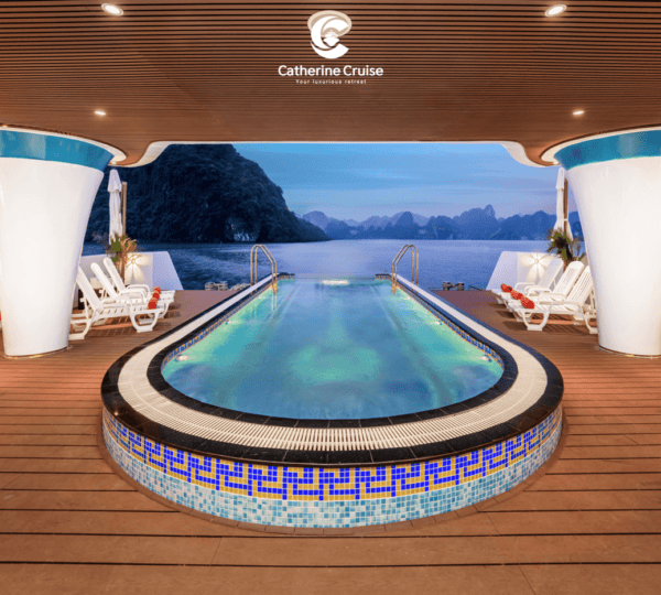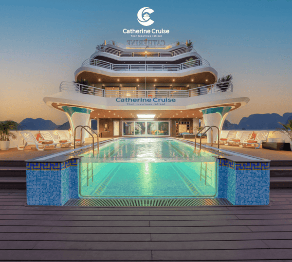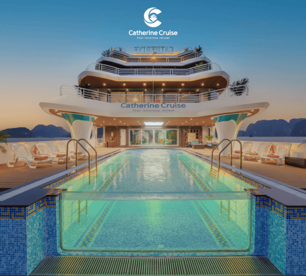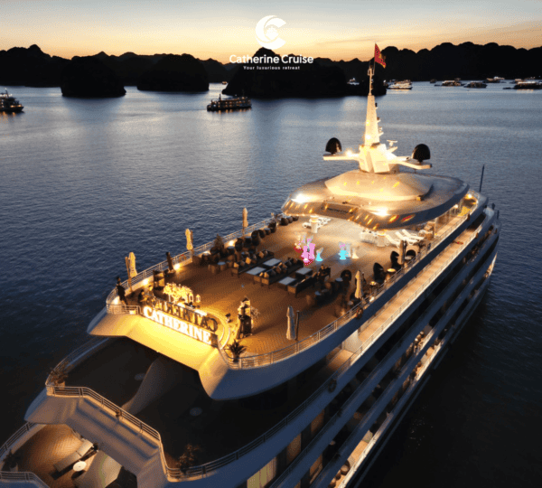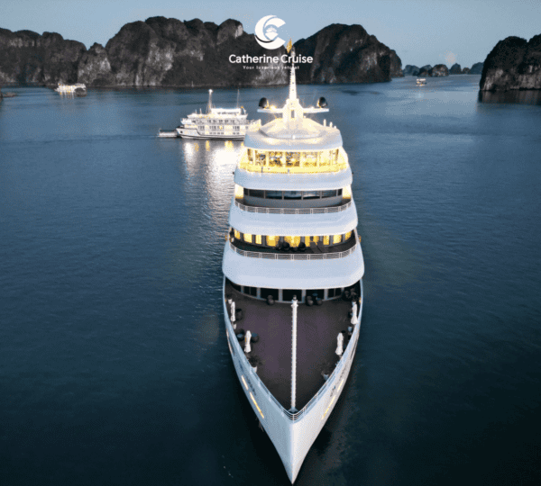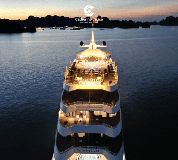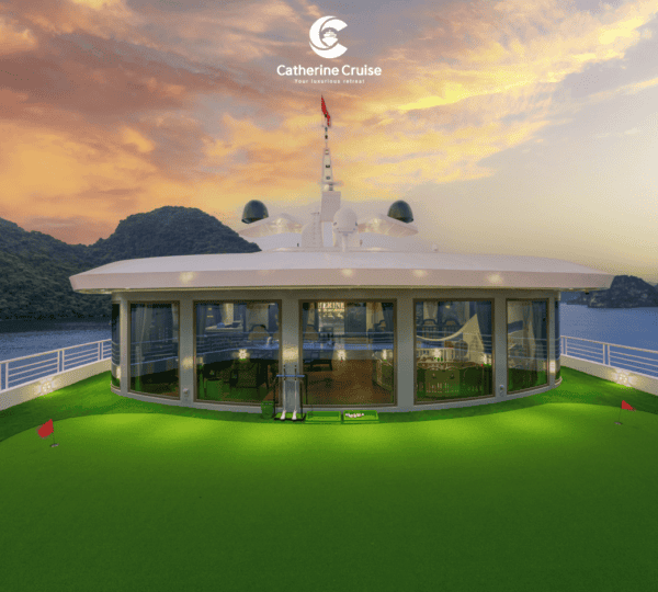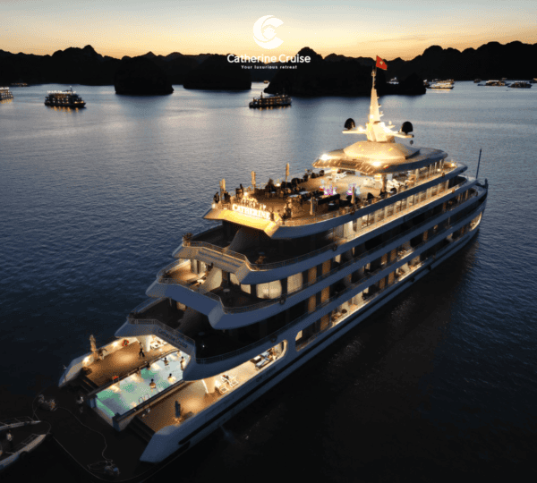 Launched in 2023, the Catherine Cruise blends modern international yacht design with elegant Indochine decoration, inspired by the graceful charm of Southeast Asian women. This luxurious vessel features a wide range of onboard amenities, including two restaurants, spa rooms for both men and women, a wine and cigar cellar, an infinity pool, karaoke rooms, Texas Hold?em poker, and a mini-golf course.