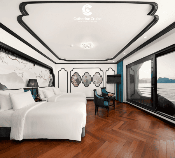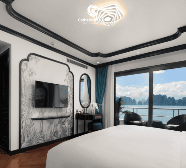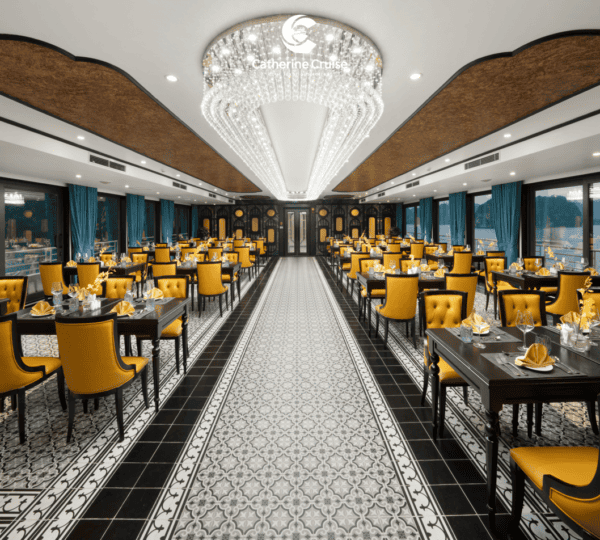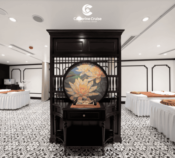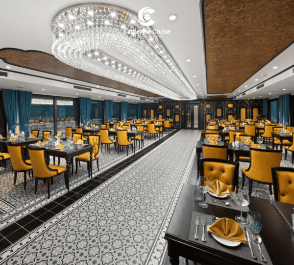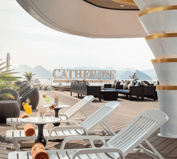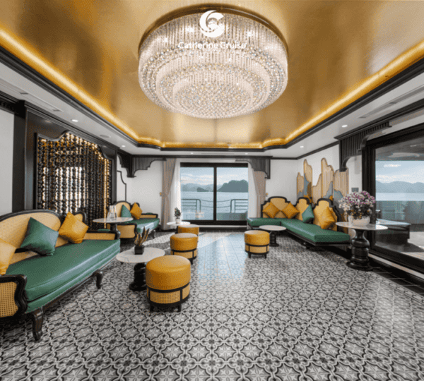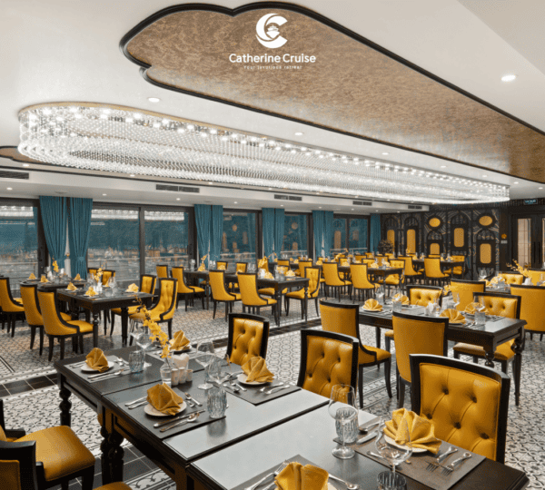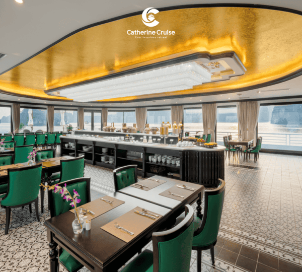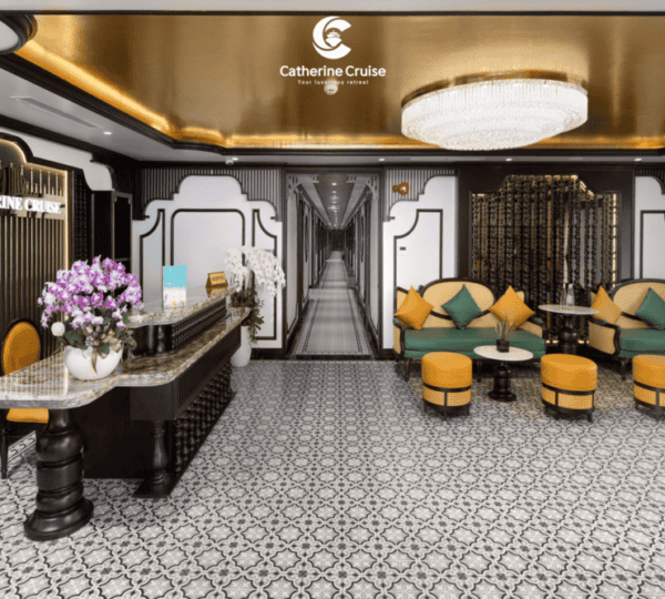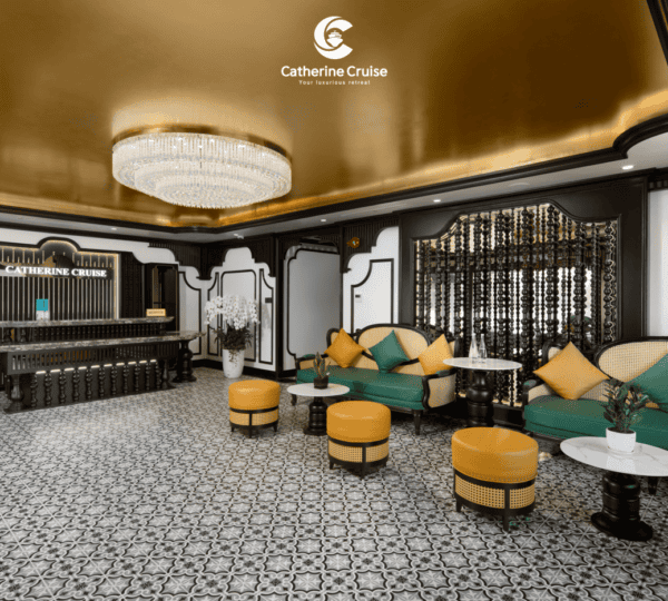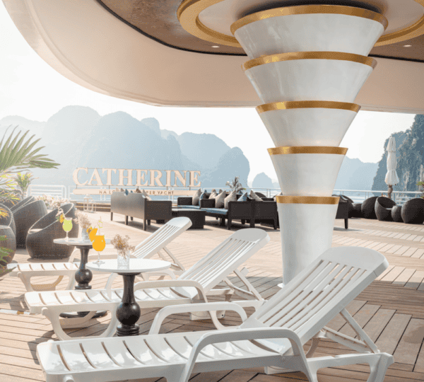 Launched in 2023, the Catherine Cruise blends modern international yacht design with elegant Indochine decoration, inspired by the graceful charm of Southeast Asian women. This luxurious vessel features a wide range of onboard amenities, including two restaurants, spa rooms for both men and women, a wine and cigar cellar, an infinity pool, karaoke rooms, Texas Hold?em poker, and a mini-golf course.