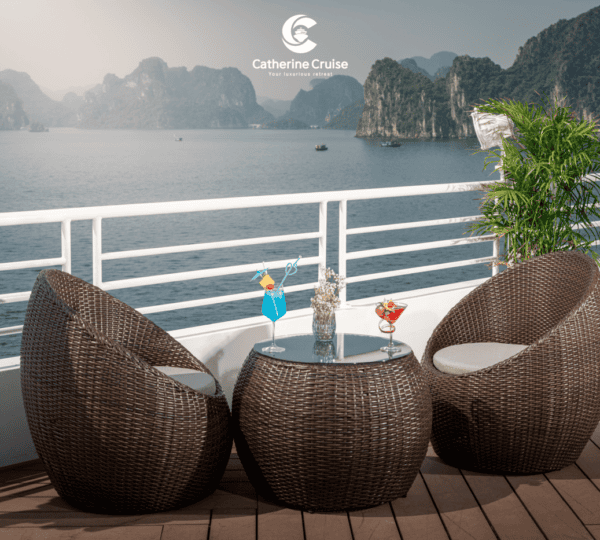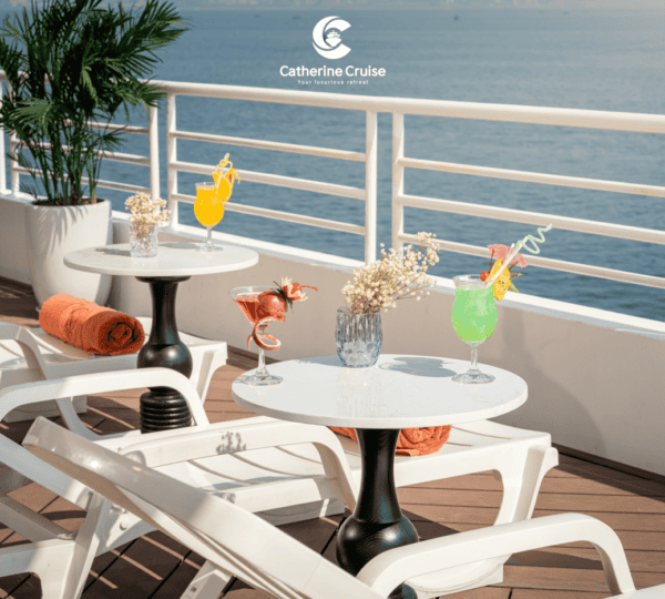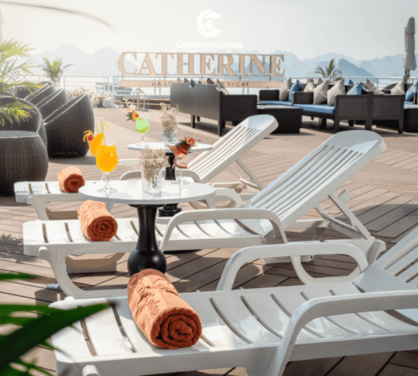 11:30 Arrival in Catherine Cruise’s Lounge at Tuan Chau marina, you enjoy a Catherine homemade welcome drink and meet the crew.