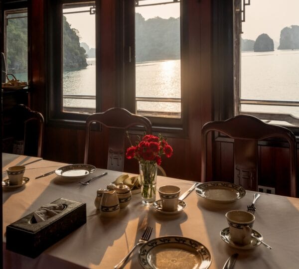 07:00-07:15 Morning view of the Bay’s landscape with a cup of tea or coffee. Breakfast is served on the cruise ship.