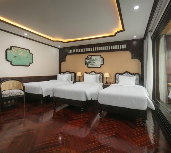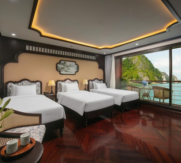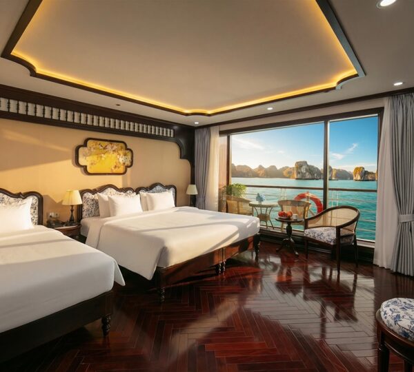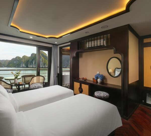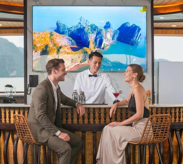 On the 2-day, 1-night journey, the cruise takes you to iconic destinations such as Sung Sot Cave, Titop Island, and Luon Cave. The extended 3-day, 2-night itinerary adds visits to the serene Ba Trai Dao Island and Trinh Nu Cave, offering a deeper exploration of the region?s natural wonders. Guests can participate in a variety of engaging activities, including swimming, kayaking, squid fishing, as well as exciting moments during Happy Hour and movie screenings. Notable onboard experiences include the Oriental Market, morning Vovinam classes, and the exclusive Vietnamese traditional clothes try-on during the Gam Voc Odyssey session.