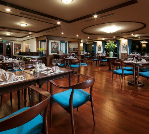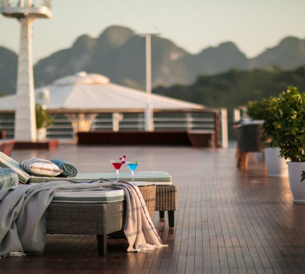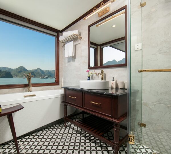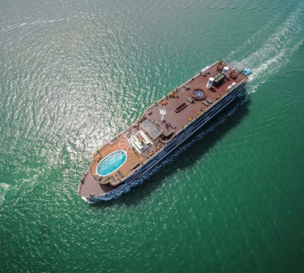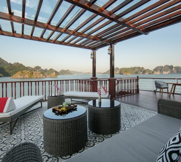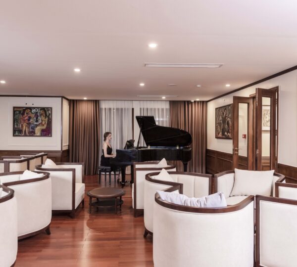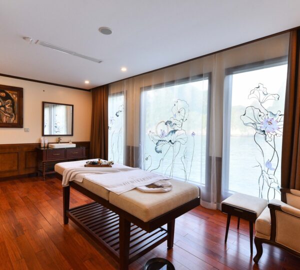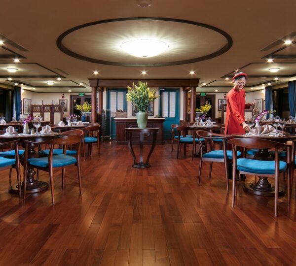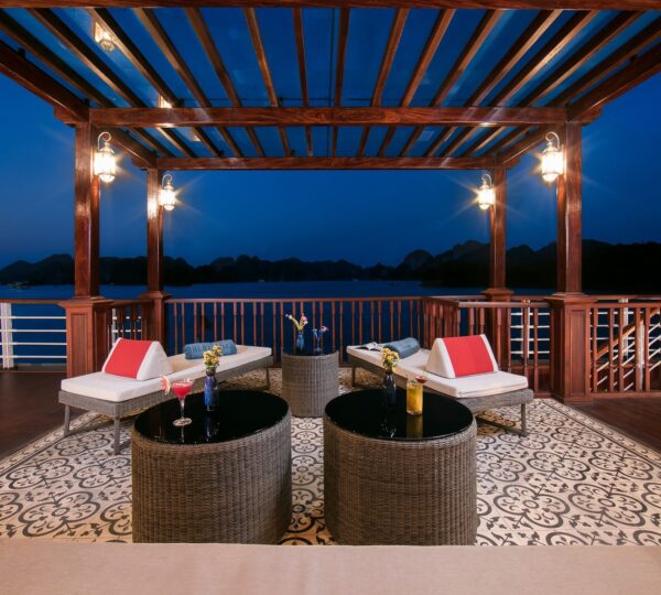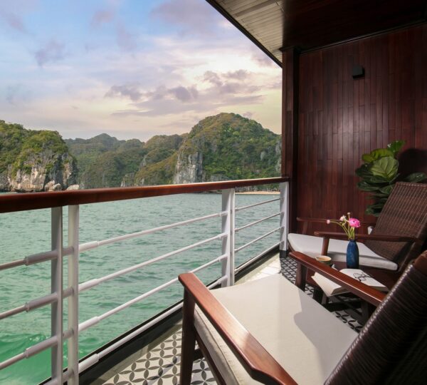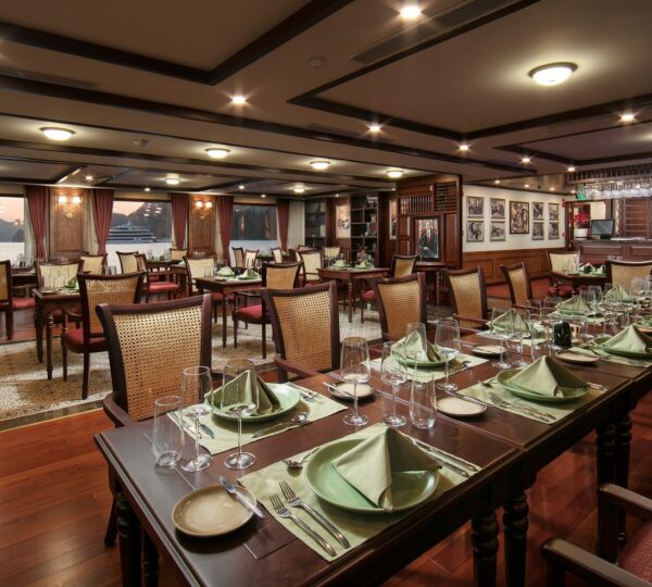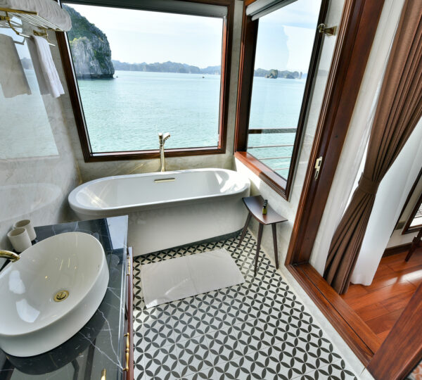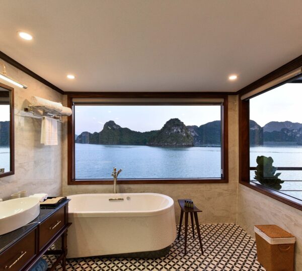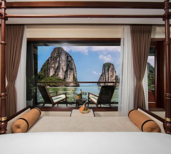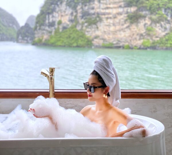 The cruise features 20 boutique cabins. Each spacious cabin, ranging from 33 to 46 square meters, showcases Vietnam’s heritage design and comes equipped with high-end amenities. All cabins include a private balcony and floor-to-ceiling windows to enhance the views. Guests can enjoy a variety of leisure activities onboard, including an outdoor pool on the third deck, a library, a piano lounge, an art exhibition, onboard shops, a poolside bar, a spa, and a gym. With a wide range of onboard and outdoor activities, this cruise is ready to bring a memorable cultural experience to you.