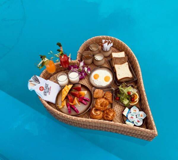 Or you can choose a luxurious breakfast, especially served in the swimming pool on the 3rd floor (time from 6:30 – 8:30). Maximum for 2 groups of guests and maximum to 6 guests (with surcharge).