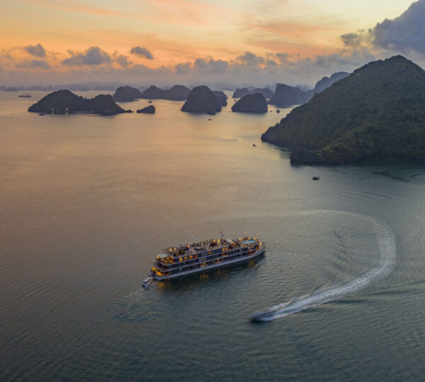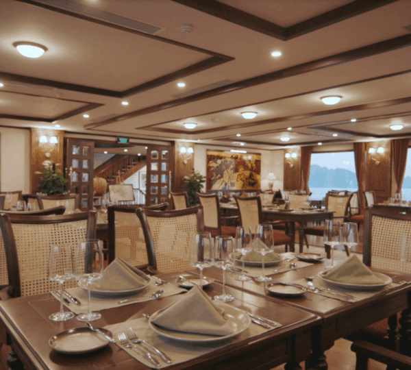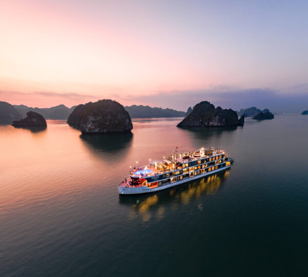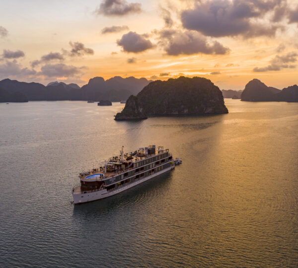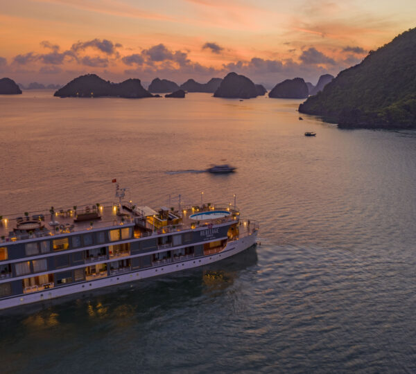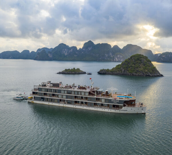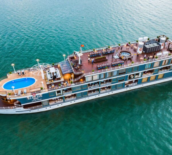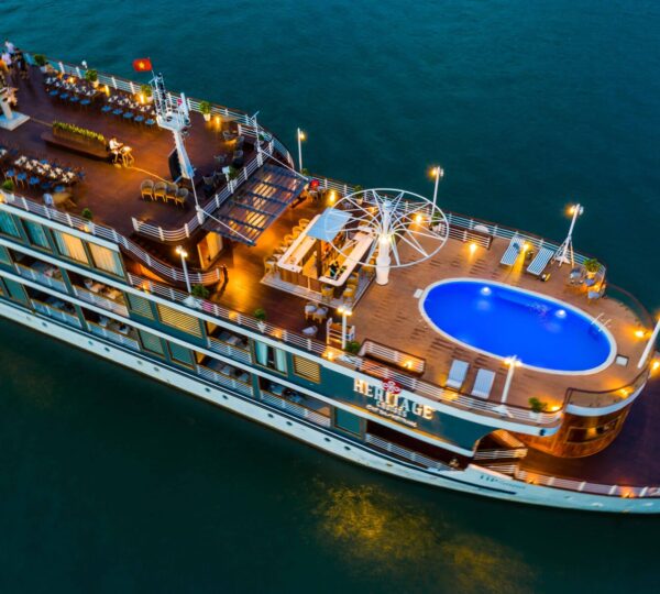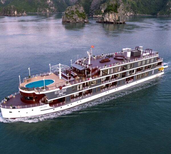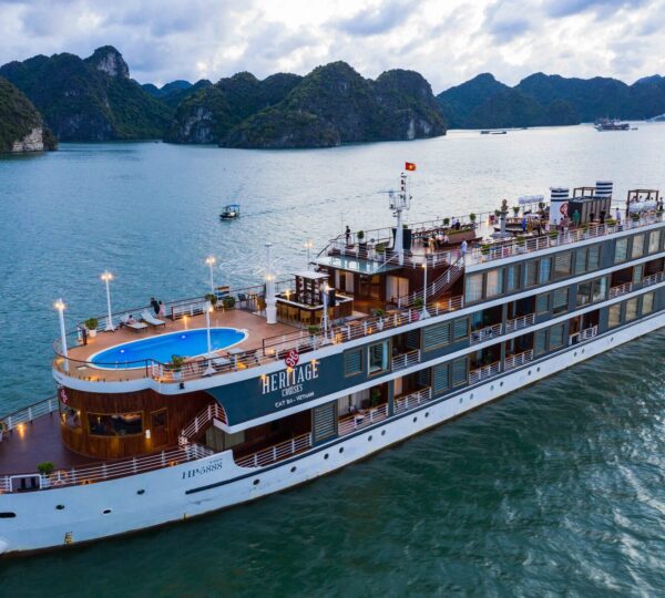 Started serving in 2019, the Heritage Cruise Binh Chuan is a luxurious 5-star cruise that captures the essence of the Indochine era through its stunning 4-story design. It offers a seamless transfer from Hanoi, taking approximately 2.5 hours.