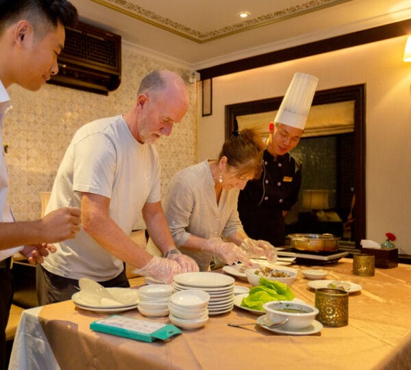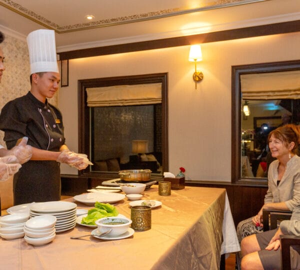 Returning to the ship, we sail to the overnight mooring area, where the “blue hour” unveils Halong Bay’s magical beauty. Relax on the sun deck with your favourite drink, absorbing the tranquil moment. Engage in a cooking class with our chef, practicing classic Vietnamese recipes to impress your loved ones at home later.