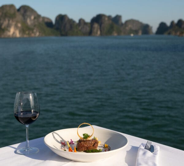 Awaken to the gentle waves and the aroma of freshly brewed coffee, complemented by pastries in the dining room. Engage in the morning Tai Chi class on the sun deck for a harmonious start amid the scenic surroundings. Embark on the day boat outing to explore the some truly unique sights of Halong Bay. During the sailing to our first stop, the impressive Sung Sot Cave, breakfast is served on our day boat Spanning 10,000 square meters, Sung Sot features two chambers with the outer one adorned with stalactite chandeliers and the inner chamber known as the grand ?opera house.? Marvel at the pond, plant life, and stunning rock formations crafted over millions of years. We had back to the boat for some relaxing time before you have the chance to explore the marine landscape by kayak. The cliffs stretch vertically out of the water and you feel a sense of freedom while meandering through this green medley of water and tree-topped islets. Continue the journey to a floating pearl farm, where you’ll discover the intricate process of cultivating, harvesting, and processing various pearls. Witness a skilled technician delicately implanting seeds into oysters. Although the odds are low, successful outcomes yield beautiful gemstones after several years. Sail back to the mothership to return to your suite offering time for sunbathing, spa, or embracing the captivating “blue hour” on the open deck.