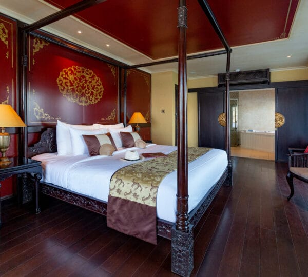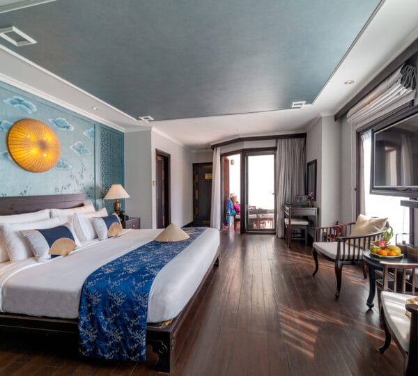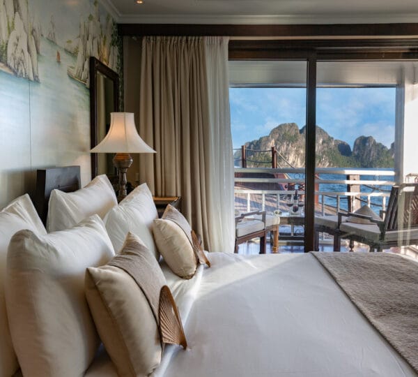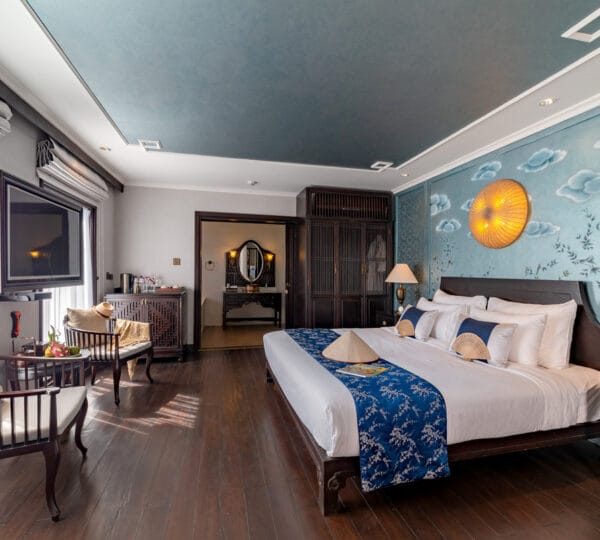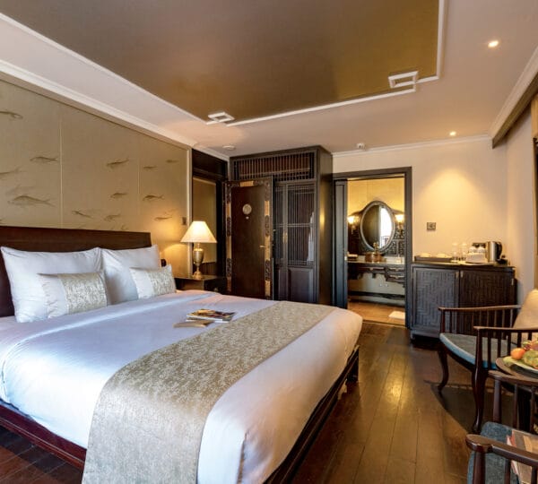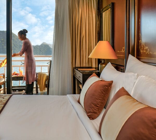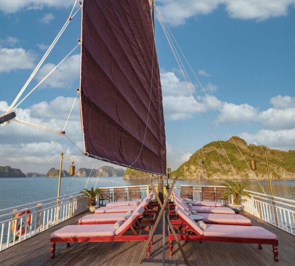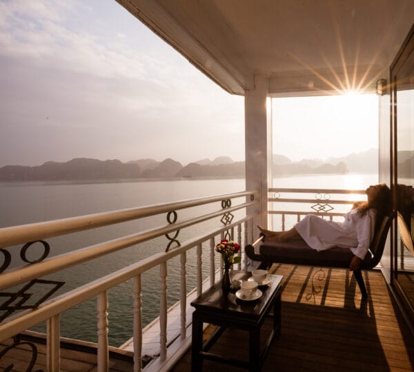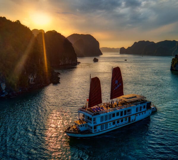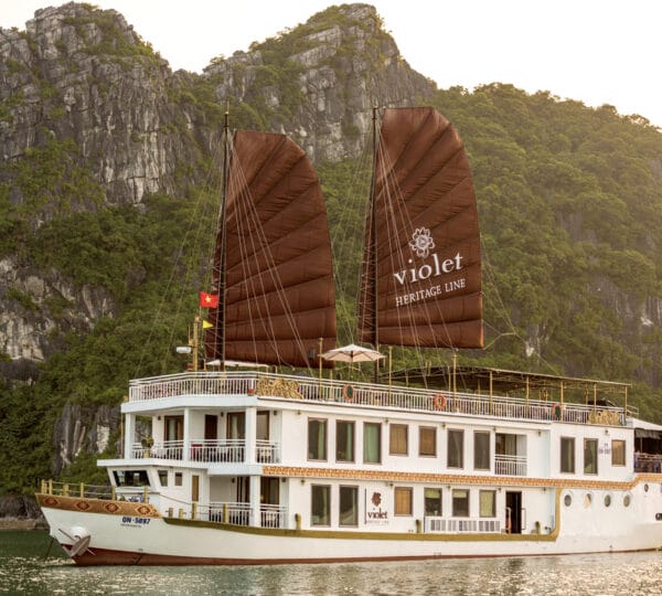 The Heritage Line Violet was built in 2009, which is a wooden boat that blends traditional charm and modern sophistication. With a meticulous design and attention to detail in its d?cor and furnishings, it stands out as one of the most luxurious cruises on Ha Long Bay. The Violet features just 6 exclusive cabins, each spanning up to 38 sqm. This small number of cabins ensures a private and intimate experience for guests. The cruise is ideal for honeymooning couples, groups of friends, or anyone seeking a serene and private getaway on Ha Long Bay to attractions such as Tien Ong Cave or Cua Van floating village.