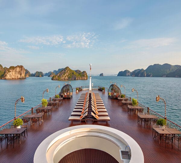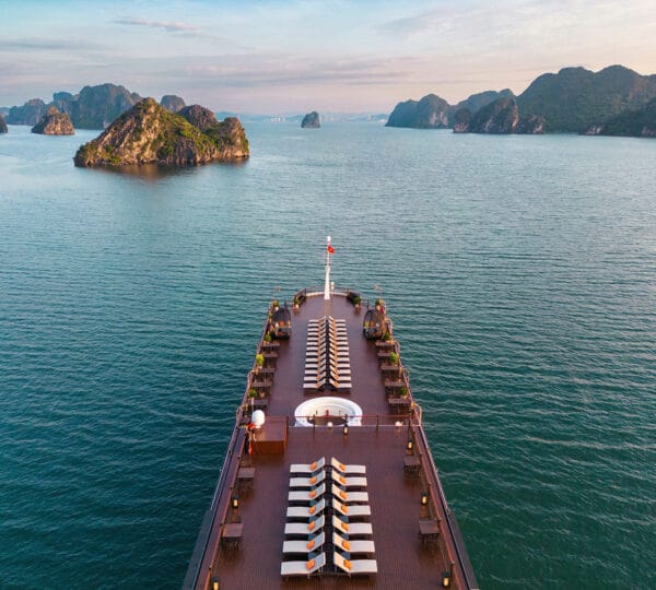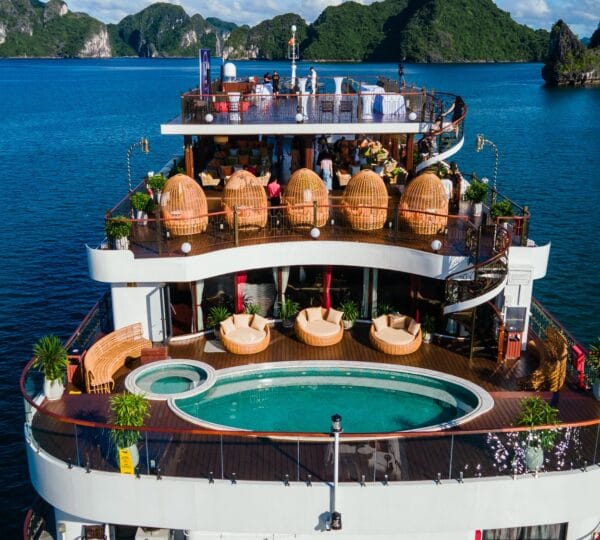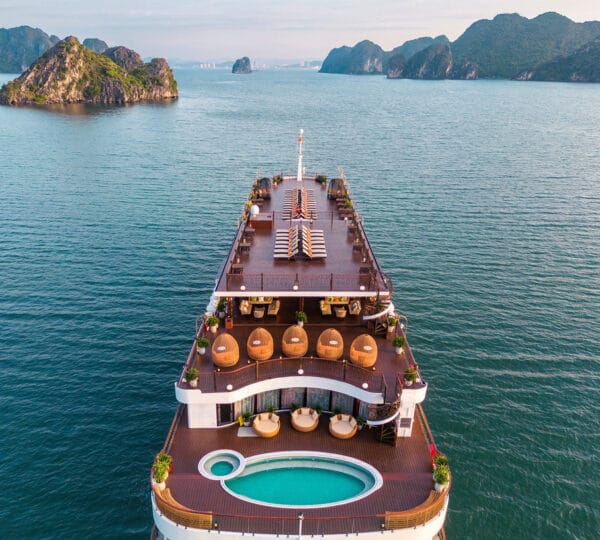 Put into operation in 2023, the Indochine Premium Cruise stands out for its unique and luxurious Indochinese-inspired design, tailored to enhance every passenger?s experience. It features the largest sundeck and total area of any cruise in Ha Long Bay, providing ample space for relaxation and enjoyment.
