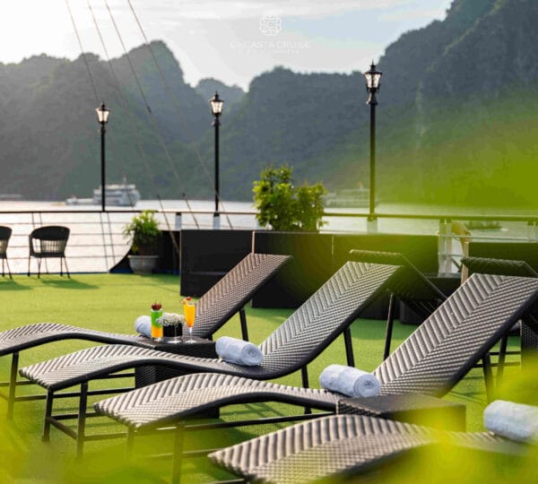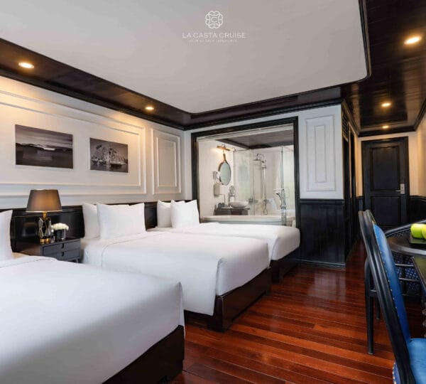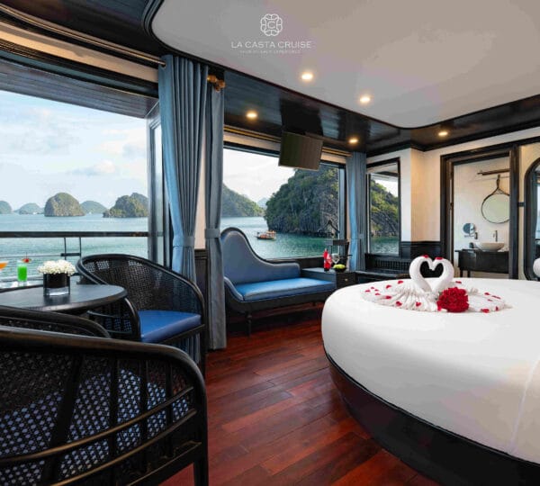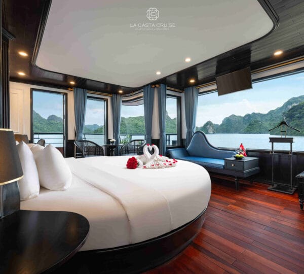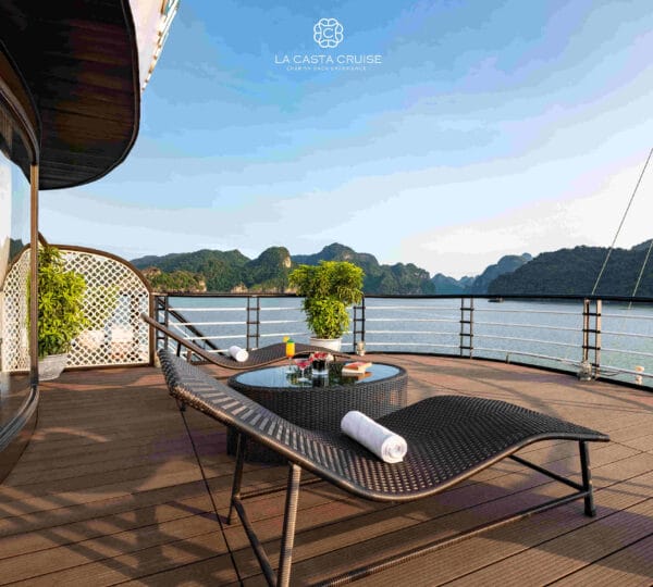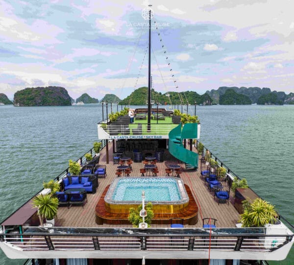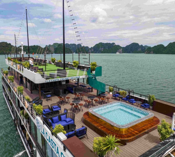 La Casta Cruise, launched in 2020, is a modern luxury vessel that has recently joined the Ha Long – Lan Ha Bay fleet, adding a fresh and contemporary touch to the region’s upscale offerings. Designed to offer a distinctive and engaging exploration of Lan Ha Bay, this cruise focuses on less-touristy areas, providing a unique and immersive experience.