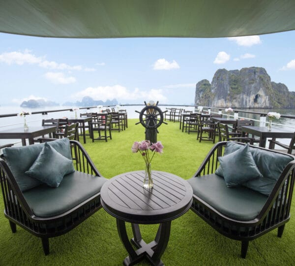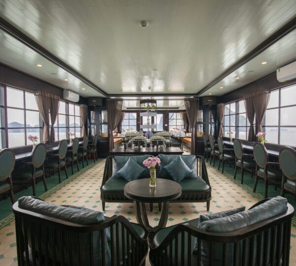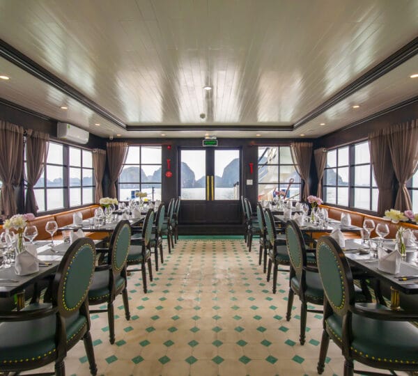 Operated by the esteemed Indochina Junk fleet, La Muse Cruise boasts a classic design, combining traditional elegance with modern amenities. The cruise offers a range of facilities to enhance your journey, including two dining areas?both indoor and outdoor?allowing guests to enjoy their meals while taking in the spectacular views. The spacious sundeck, furnished with chairs and tables, provides the perfect spot for relaxation under the sun. Additionally, there is a well-stocked bar and fully equipped bathrooms to ensure a comfortable and convenient cruising experience.