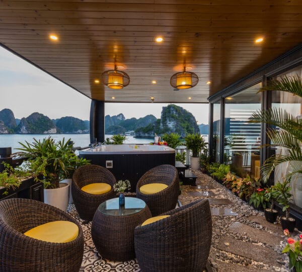 La Regina Grand elevates the dining experience with its luxury restaurant, which accommodates up to 100 guests. Each dining space offers a refined atmosphere and exquisite cuisine, making every meal a special occasion. For relaxation and leisure, you can unwind in the jacuzzi pool, watch the sunset from the top deck, participate in Tai Chi sessions, and enjoy the serene environment of the bay.