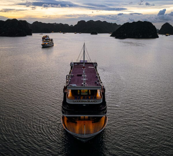 12:15 Transferred by speed boat/ tender to La Regina Legend/ Grand Cruises. Welcome aboard the cruise,refresh with our welcome drink while Cruise Manager briefing cruise orientation, activities & on board safety. The boat starts to cruising to Lan Ha bay.