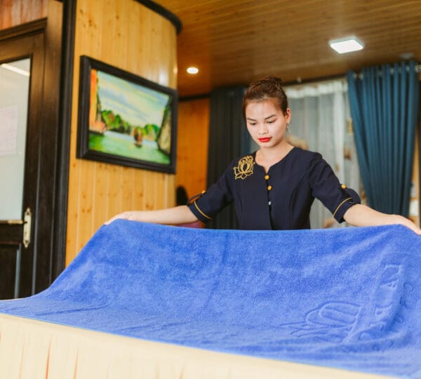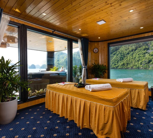 The cruise?s itinerary through Lan Ha Bay, an untouched extension of Halong Bay, is packed with exhilarating activities. Explore the pristine waters with kayaking, bike around picturesque landscapes, visit the vibrant Cat Ba Island, and access some of the bay?s most secluded attractions.
