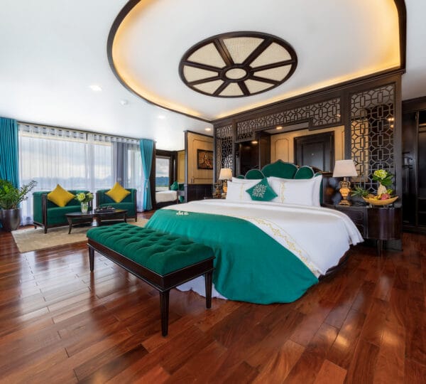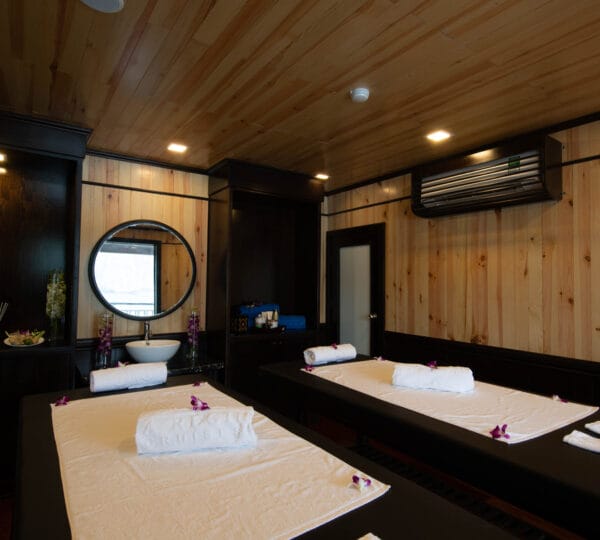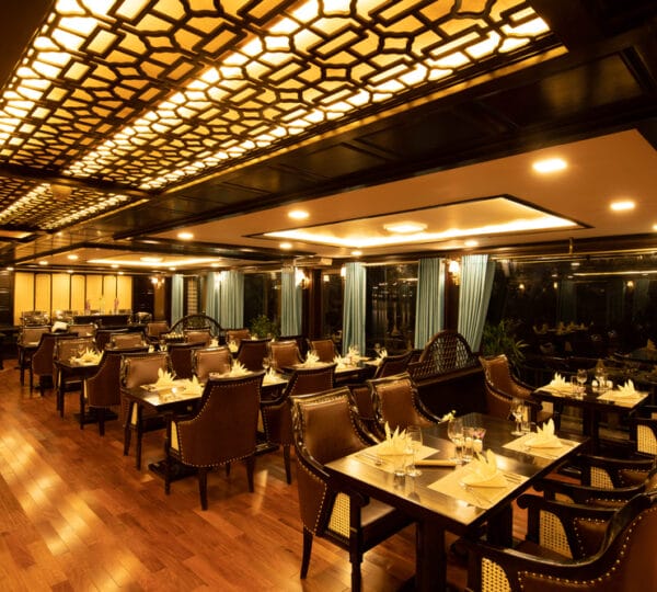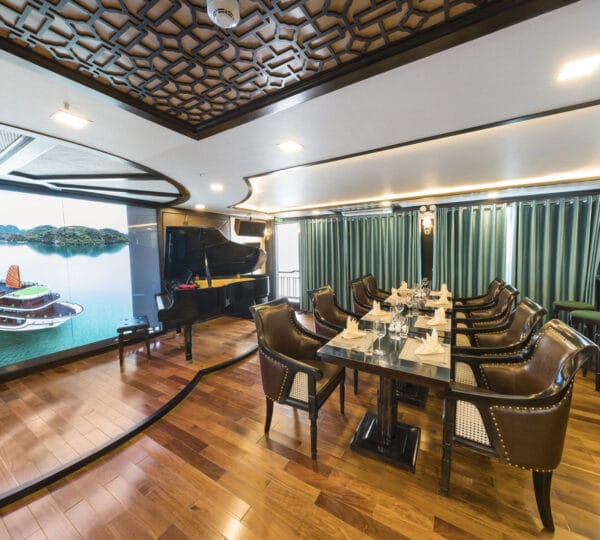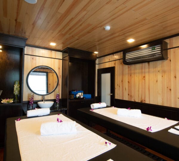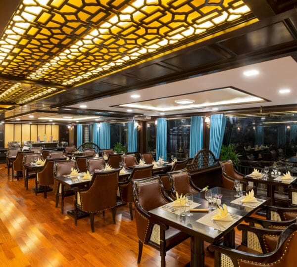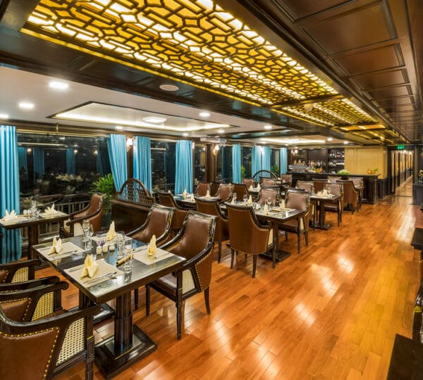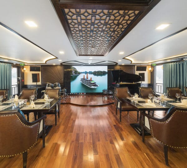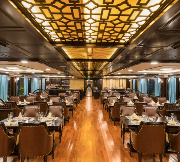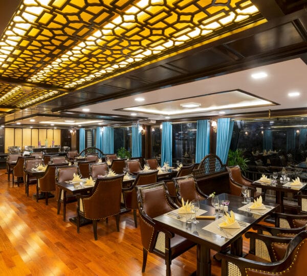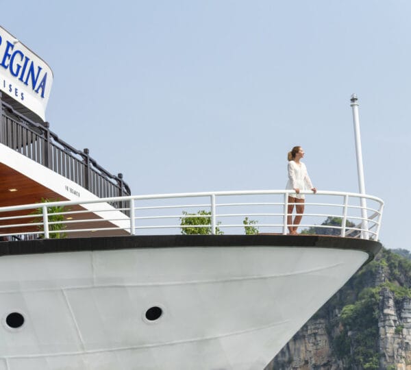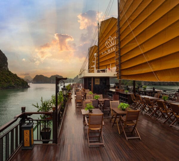La Regina Legend Cruise, a premier 5-star vessel, began its journey in 2018. The La Regina Legend features 27 spacious and thoughtfully appointed cabins, each equipped with a private balcony and an ensuite bathroom. The cabins with sizes ranging from 45 to 135 sqm, are elegantly furnished with wooden furniture and come with modern amenities including air conditioning, a flat-screen TV, a minibar, a safe box, and a wardrobe. Special offer if you book Queen Regent Suite, the biggest one (135 sqm) in the bay include spa service, private dining service with butler, buffet breakfast and lunch, and ? la carte dinner.