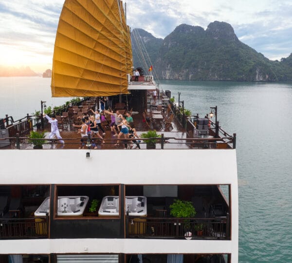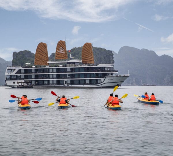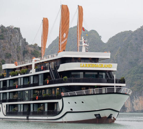 The itinerary on the La Regina Legend takes you to some of Lan Ha Bay?s most breathtaking locations. Discover the beauty of Dark – Light Cave, marvel at the natural formations in Trung Trang Cave, experience the charm of Viet Hai Village, and relax on the pristine Ba Trai Dao Beach.