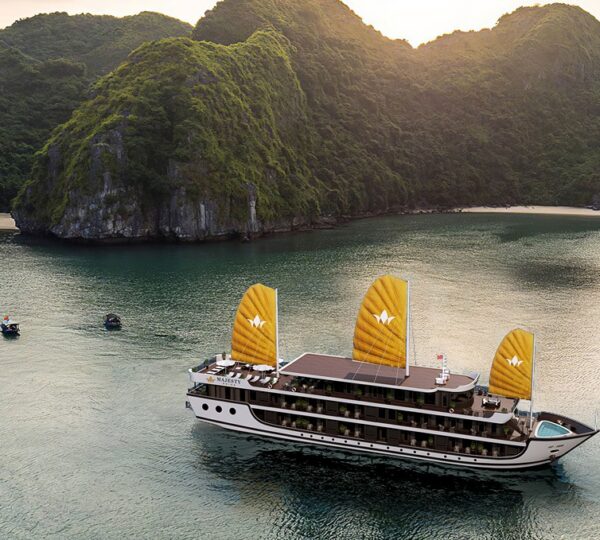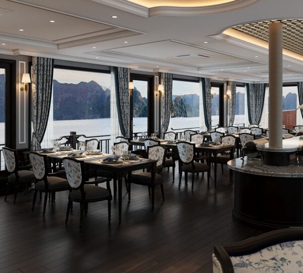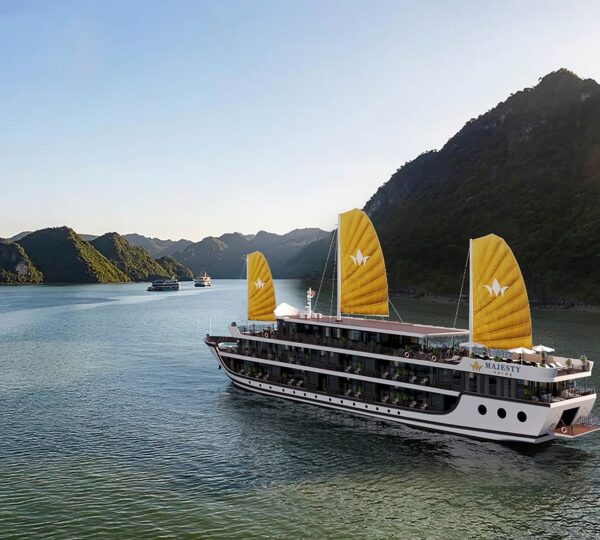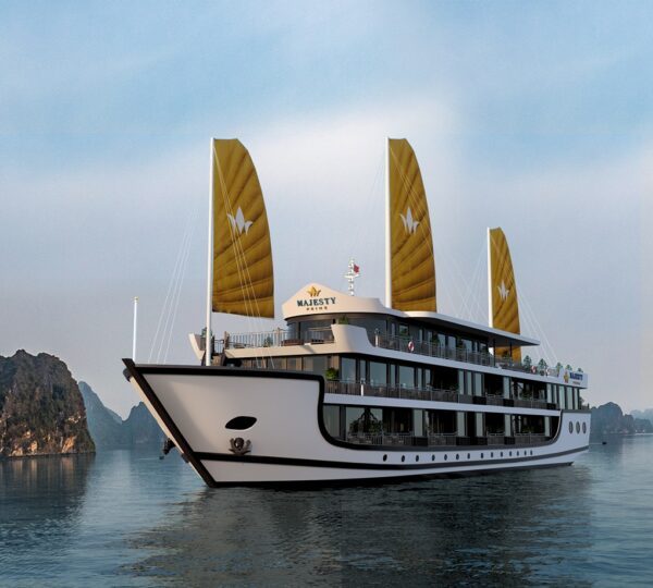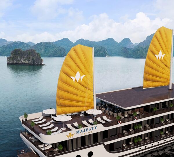 Set sail on the newest jewel of the Premier Cruise Group, Majesty Prime Cruise, which began its voyage in 2025. This stunning vessel seamlessly blends the beauty of traditional Vietnamese design with the elegance of French neoclassical style.