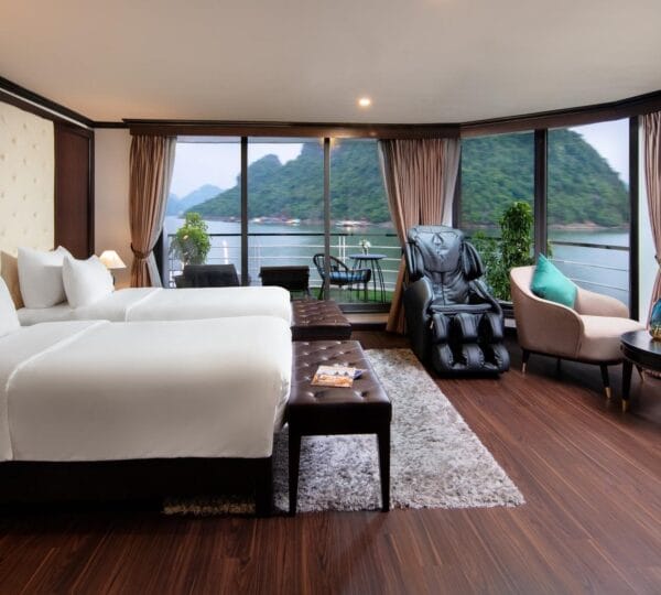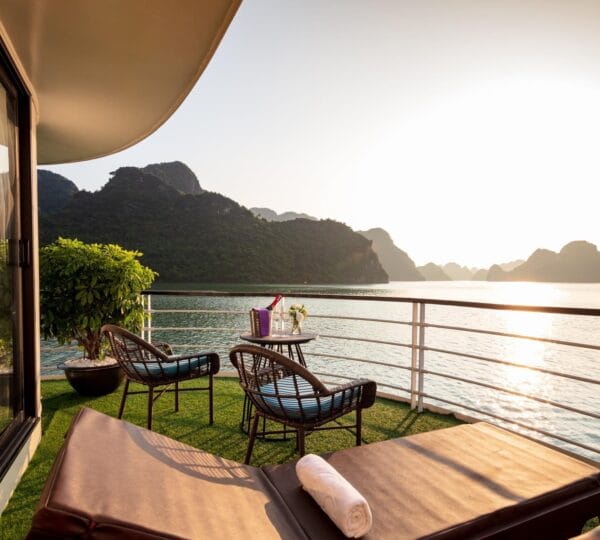The Mon Cheri stands out as one of the most contemporary and opulent vessels cruising Halong Bay since 2018. It is famous for being the fastest and most modern non-wooden ship in Lan Ha Bay, offering a superb combination of adventure and luxury. This 5-star cruise features 18 elegantly appointed cabins, each a minimum of 35 square meters, blending classic European and rustic Vietnamese design elements. All cabins come with a private balcony.