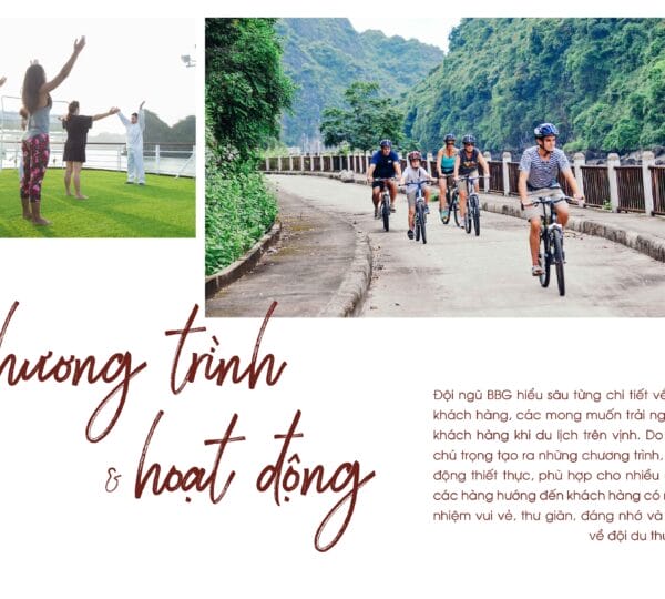 15:30 Visiting Tra Bau area where has known as an area famous for its unspoiled, poetic natural beauty and attractive seascape of Lan Ha Bay. This is the best time for kayaking to discover the truest beauty of the limestone islands. Immerse yourself in the emerald green water of the bay or enjoy the Jacuzzi pool on the Mon Ch?ri Cruises.