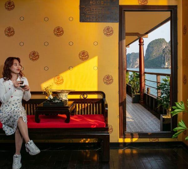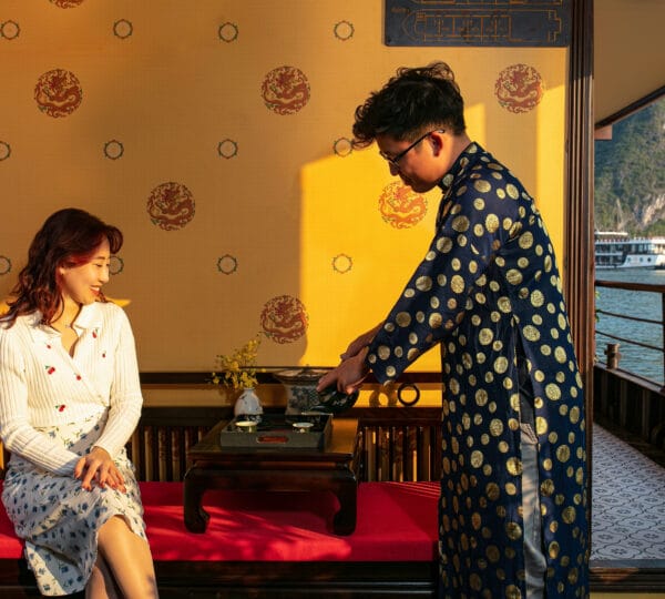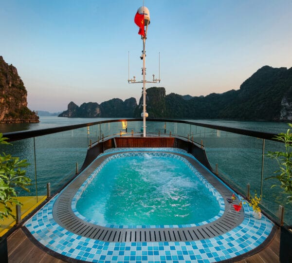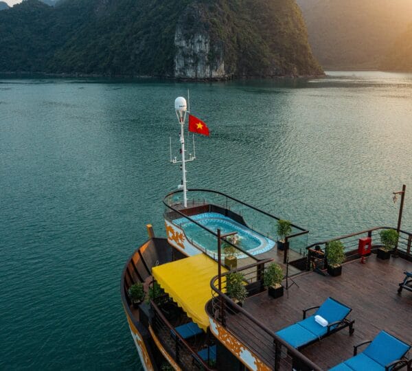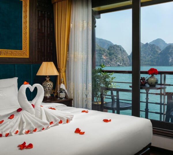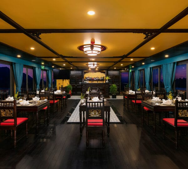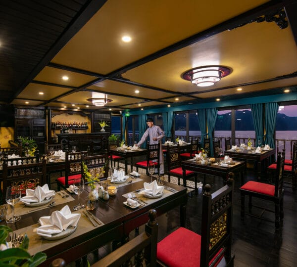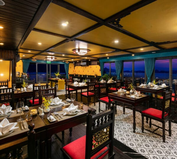 Guests can indulge in a variety of cuisines, ranging from local delicacies to international dishes, all served in an intimate and romantic dining setting. The cruise provides a unique itinerary with isolated attractions of Lan Ha Bay, including Trung Trang Cave, Tra Bau, Ao Ech, and Viet Hai village. Set sail on the Nostalgia Cruise where luxury, privacy, and exceptional service come together.