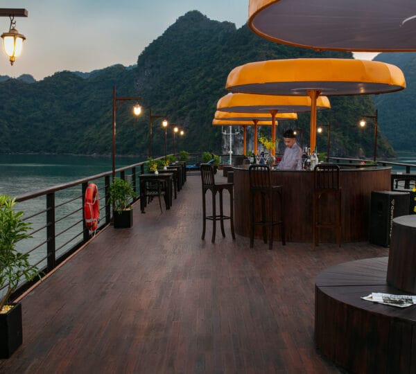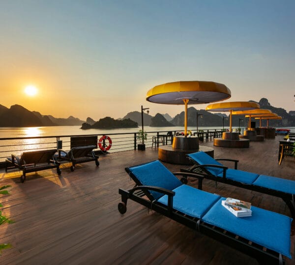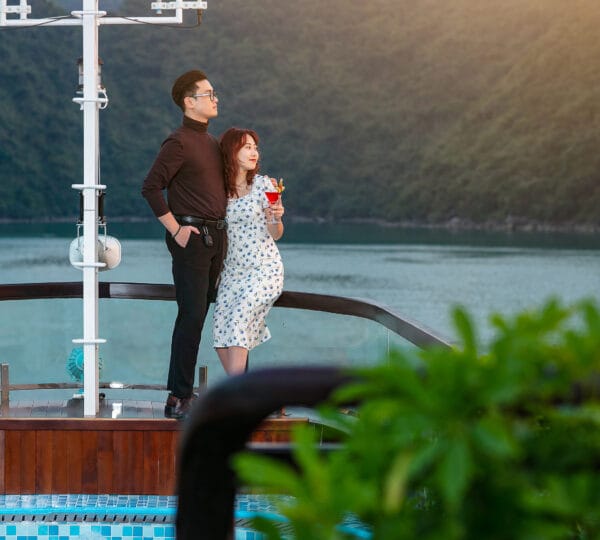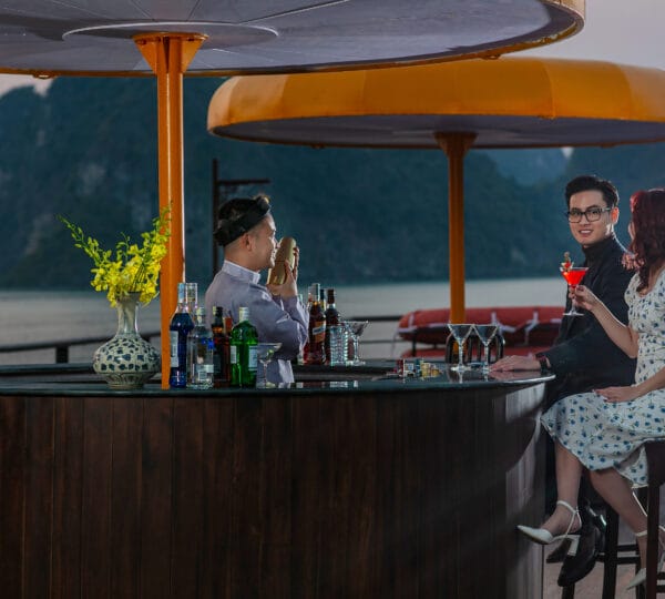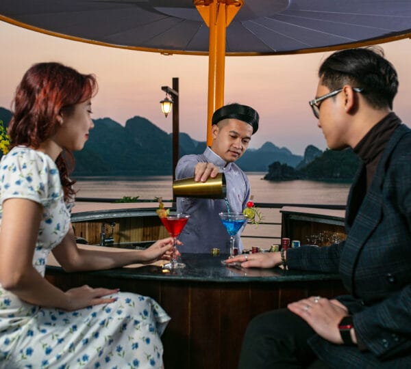 16:00-16:30 Return to Nostalgia Cruises. Guests may join a cooking class, take a swim at the untouched area, or enjoy the Happy Hour (buy 1 get 1) at the bar while watching the magnificent sunset over the Gulf of Tonkin.