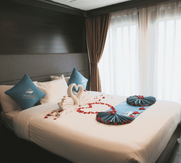 The Oasis Bay Cruise features 22 cabins with a minimum size of 16 sqm, designed to cater to both individual travelers and groups. The cabins are complemented by advanced facilities, ensuring a comfortable and enjoyable stay. The cruise?s cozy restaurant and stylish bar provide delightful dining and relaxation options, where you can enjoy a range of delicious meals and beverages in a refined setting.
