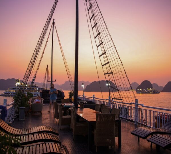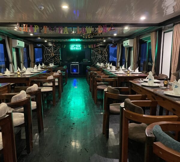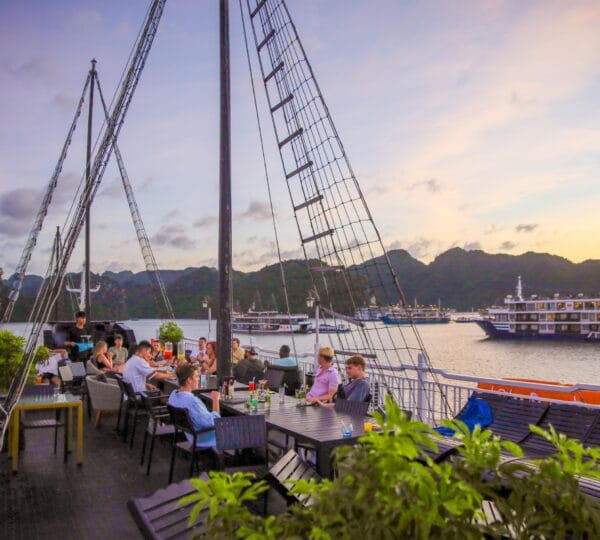 19:00 -20:30: Enjoy delicious food prepared by the best Chef in Ha Long Bay at the cruise dining area.