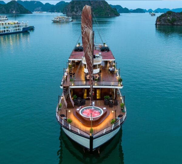 17:00-17:30 Orchid Cruises anchors for an overnight stay in Tra Bau, Lan Ha Bay, offering a serene landscape to immerse yourself in the bay’s natural beauty.