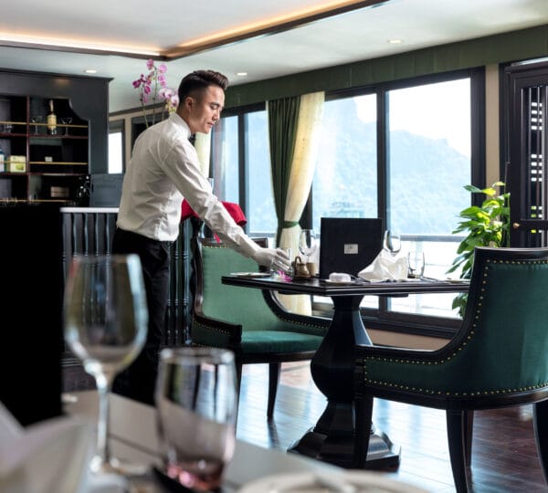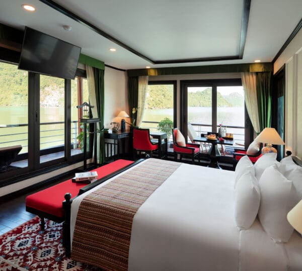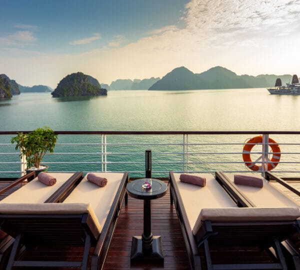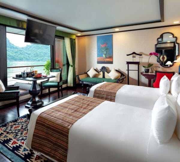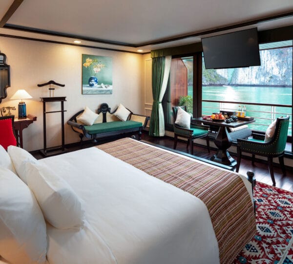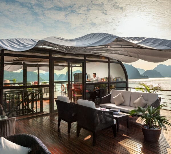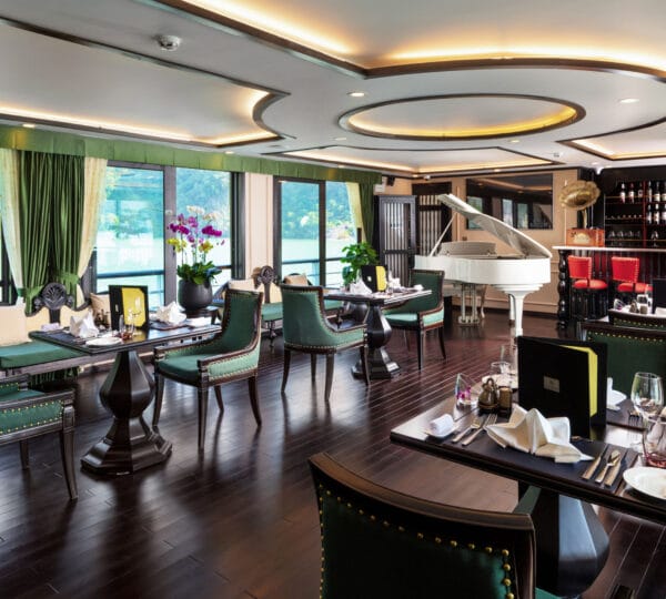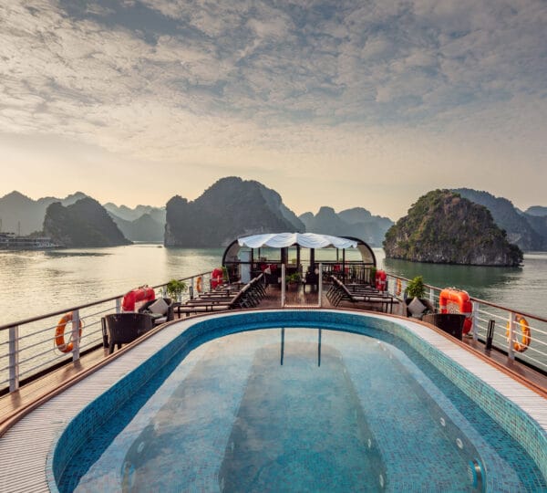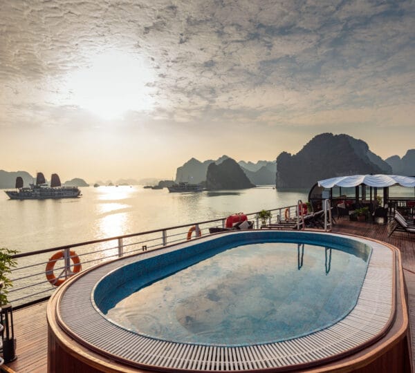 You can unwind in the spacious outdoor jacuzzi and enjoy a gourmet dining experience, featuring a rich fusion of Asian and European cuisines. Room service is available at your convenience, complemented by a crew proficient in English and well-versed in local destinations and culture. Embark on the Orchid Premium for a luxurious and intimate cruise through Vietnam?s famous Ha Long Bay and Lan Ha Bay.