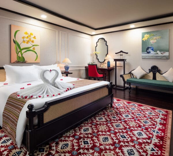 Orchid Premium is a sophisticated cruise launched in 2019 with only 5 exclusive cabins. It is the most modern and luxurious product line of the Pelican Group. This ship boasts an elegant Indochine style, ensuring a unique and immersive journey through the breathtaking Lan Ha Bay. With the cabin sizes varying from 45 to 65 sqm, each one is appointed to maximize comfort and relaxation, ideally for a family and group of 8-12 guests who require ultimate privacy.