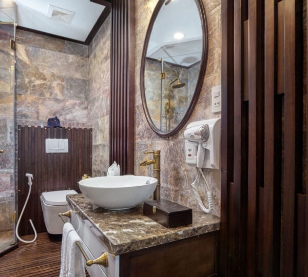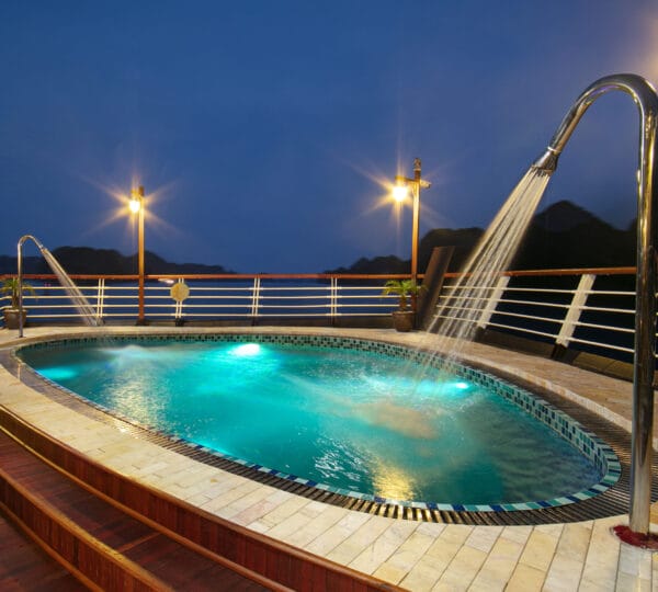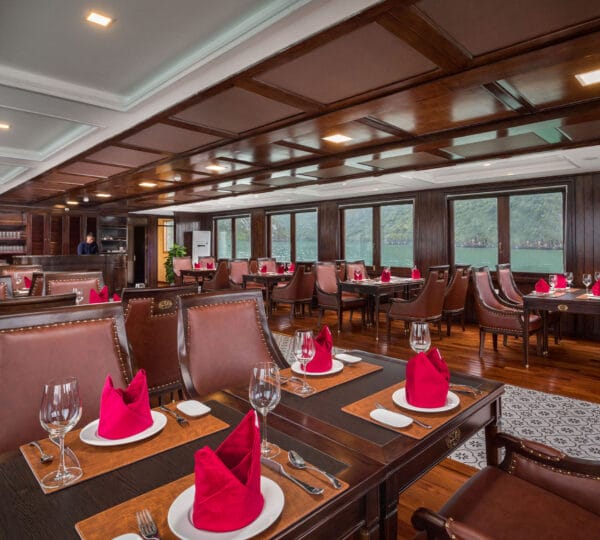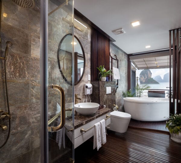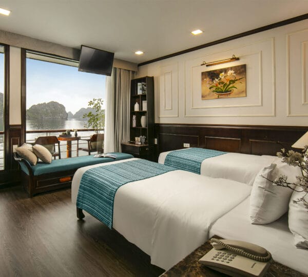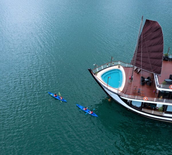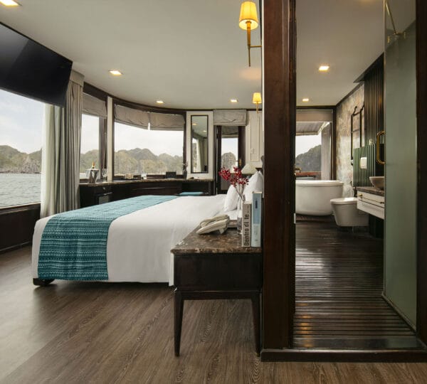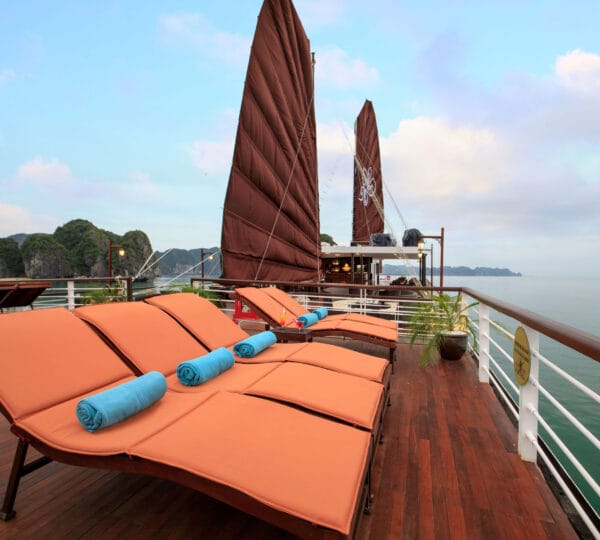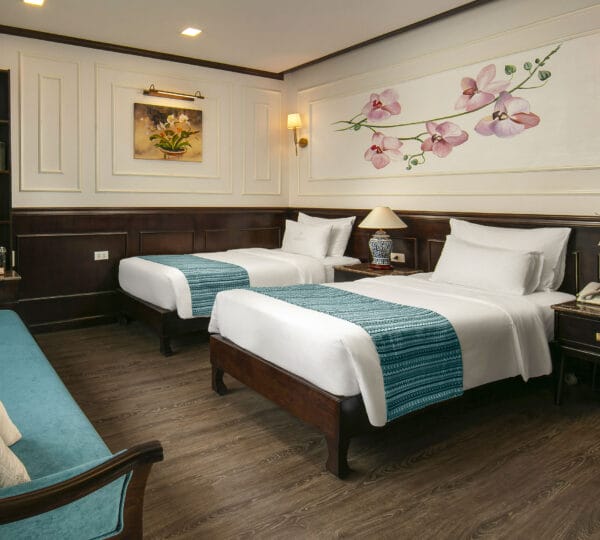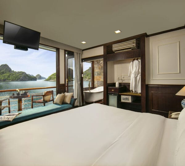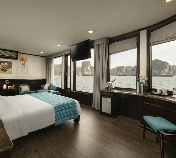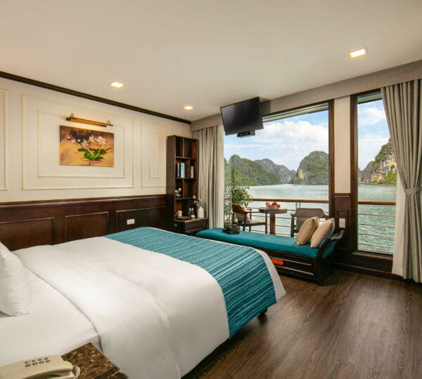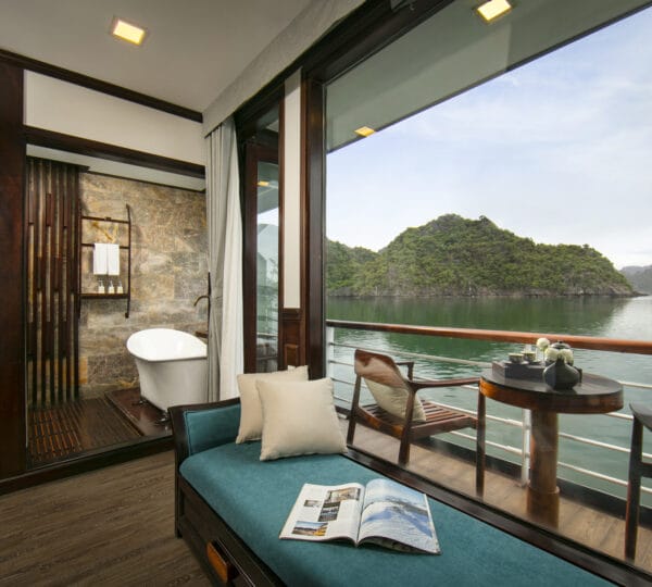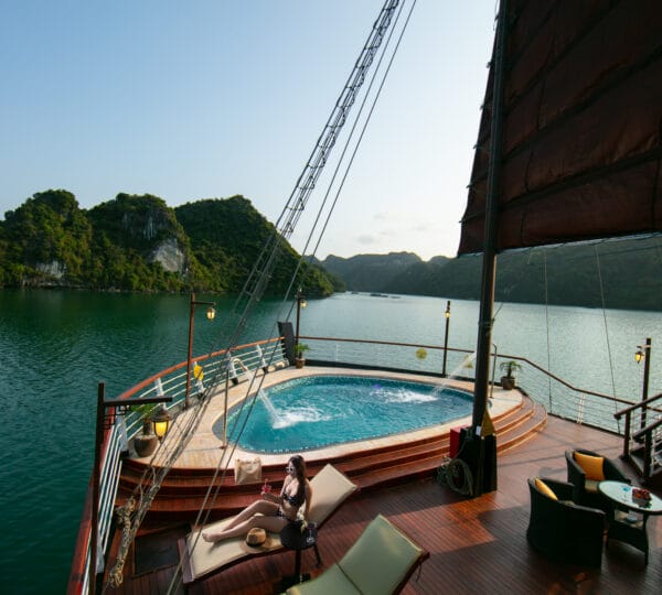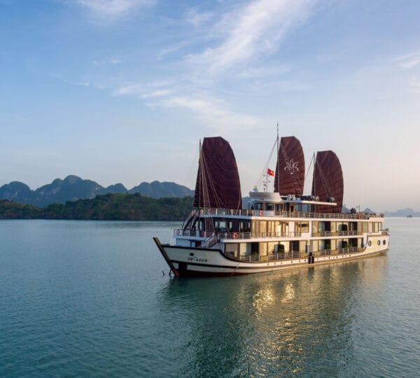 Located just a scenic 2-hour drive from Hanoi center, guests are directly transported in luxury minivans to the cruise. Catering for families, couples, or groups of friends, Orchid Trendy offers spacious cabins complete with all modern facilities and amenities such as a large jacuzzi on board. Each cabin comes with an open balcony providing breathtaking views of Ha Long Bay and Lan Ha Bay. You can also explore lesser-known routes to Trung Trang Cave, a natural wonder awaiting discovery