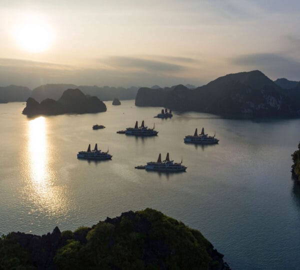 17:00-17:30 Orchid Cruises anchors for an overnight stay in Tra Bau, Lan Ha Bay, offering a serene landscape to immerse yourself in the bay’s natural beauty.