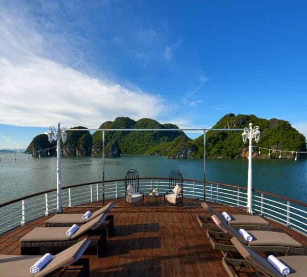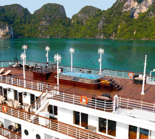 The Paradise Elegance provides memorable excursions, including visits to Titov Island for stunning panoramic views of the bay and exploration of Sung Sot Cave, the largest cave in Ha Long Bay.
