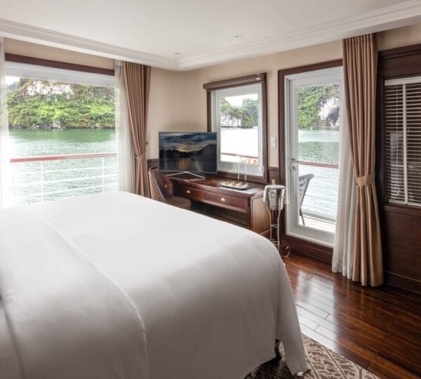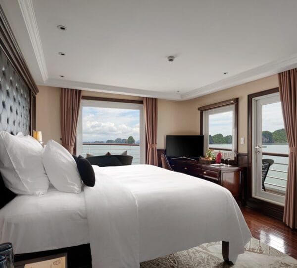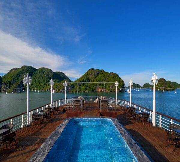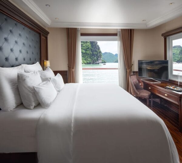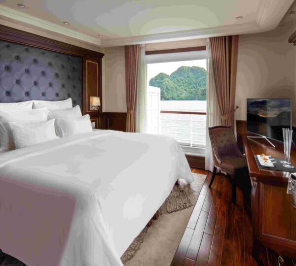 The Paradise Elegance, launched in 2017, epitomizes modern luxury and stands out as one of the largest and most opulent cruises in Ha Long Bay. It features 31 generously sized cabins, each measuring up to 35 sqm, all equipped with private balconies.