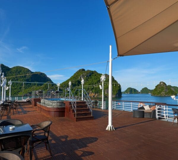 14:30-15:30 Enjoy afternoon tea onboard Paradise Explorer whilst admiring spectacular scenic views of Ha Long Bay.