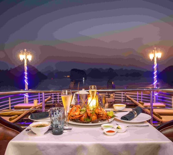 13:00-14:30 Time to enjoy your lunch at Le Marin Restaurant while Paradise Elegance passes by beautiful islets of Halong Bay.