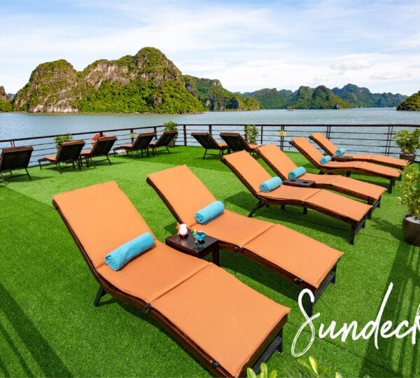 15:30 Visiting Tra Bau area where has known as an area famous for its unspoiled, poetic natural beauty and attractive seascape of Lan Ha Bay. This is the best time for kayaking to discover the truest beauty of the limestone islands. Immerse yourself in the emerald green water of the bay or enjoy the Jacuzzi pool on the Peony Cruises.
