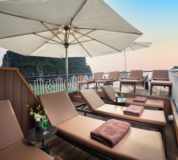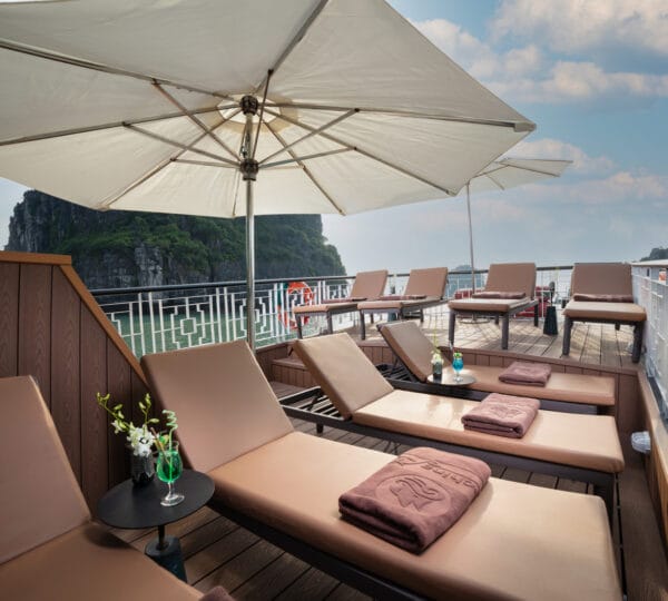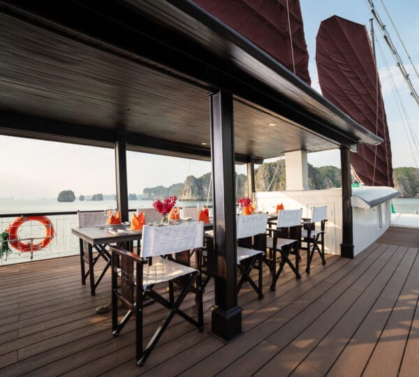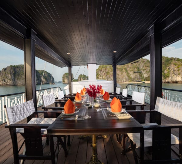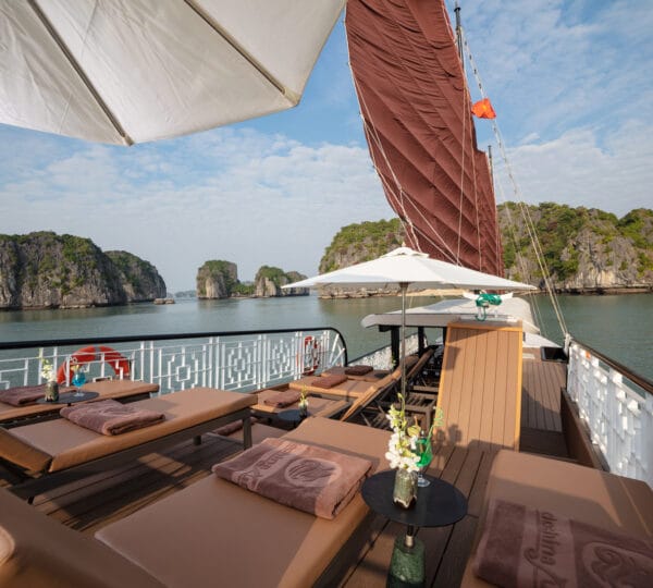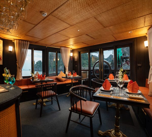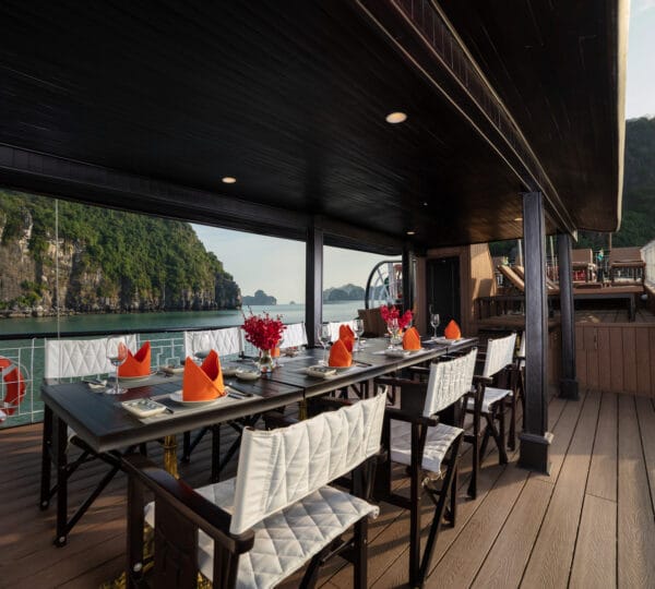 The cruise is equipped with a luxury dining area with both indoor and outdoor seating options, allowing you to savor meals with beautiful views. Relax and unwind in the comfortable lounge or enjoy sunbathing and relaxation in designated areas on the deck.