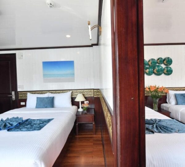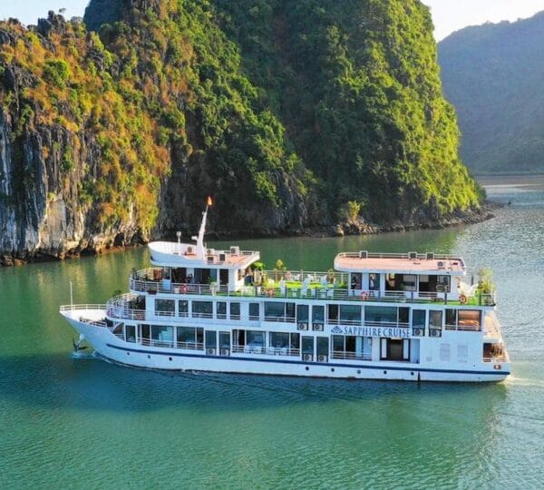 Sapphire Cruise is a modern deluxe vessel built in 2018, designed to offer an exceptional experience in Lan Ha Bay, a stunning extension of Ha Long Bay.