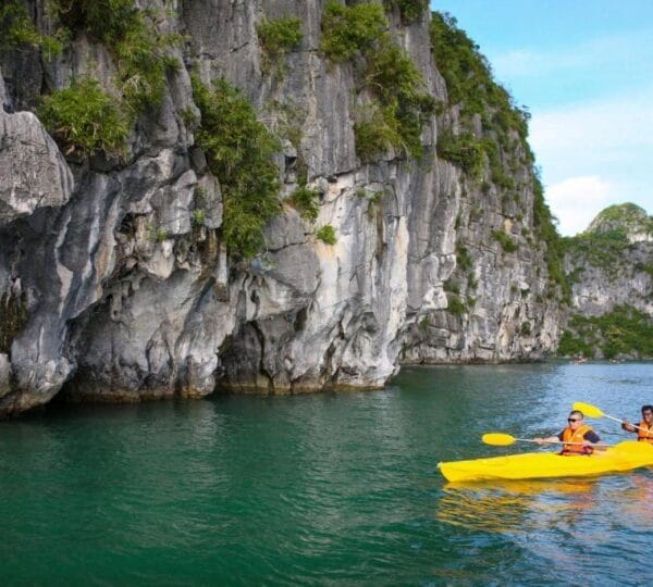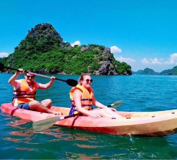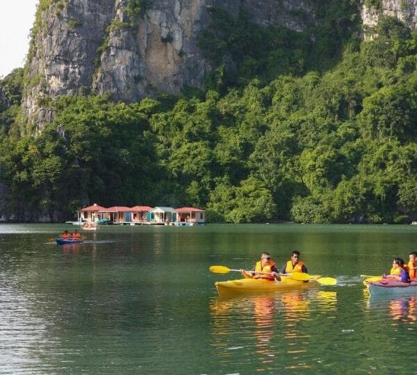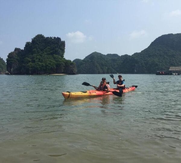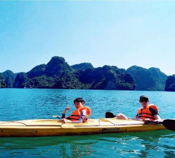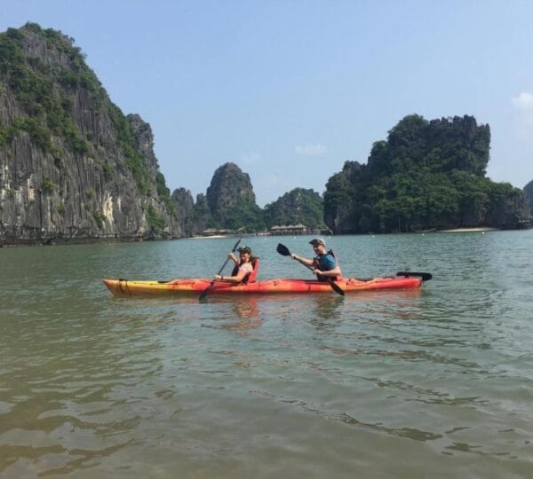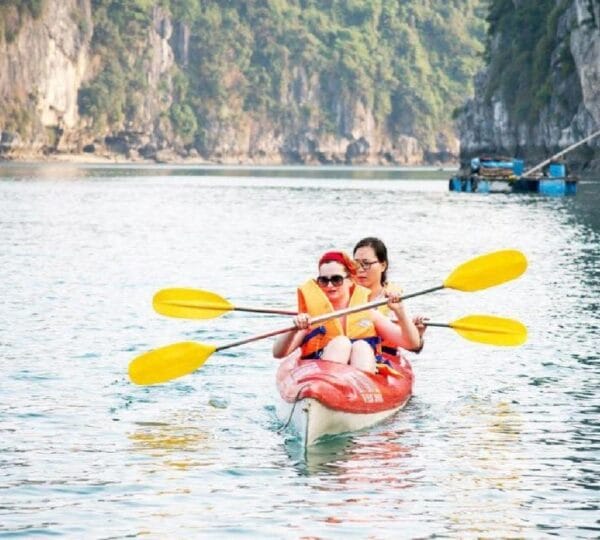 14:00 When lunch is about to finish, it is just nice that the Cruise completes its entry through Cua Van area to Lan Ha Bay (as part of Halong Bay). The area is surrounding of a lot of extraordinary limestone karst landscapes. Guests can start their journey to explore the Lan Ha Bay by Kayaking and swimming in the crystal clear waters of the bay.