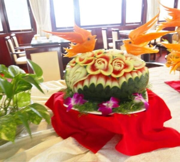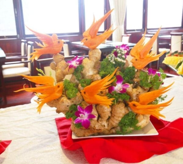 13:15 While our boat starts to cruise, enjoy the special lunch of fresh seafood and vietnamese food cooked by one of the best Chef in halong bay.