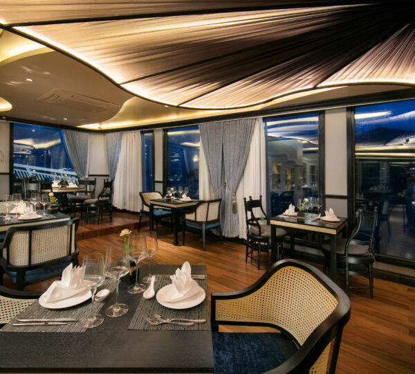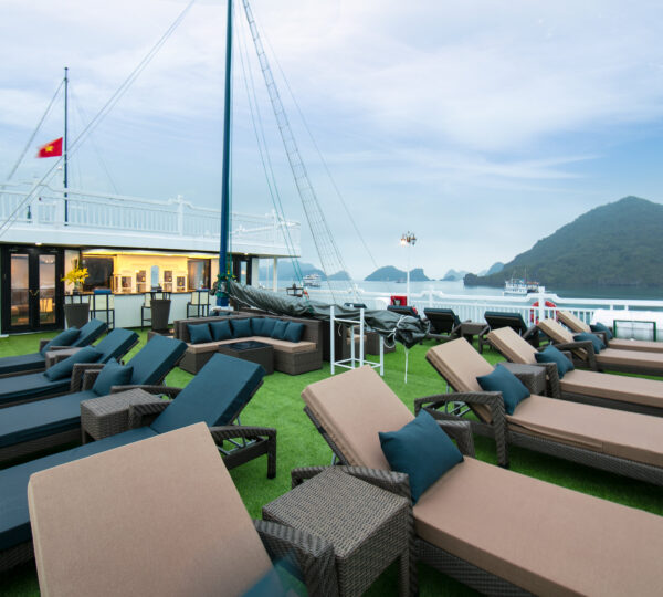 Onboard, indulge in exquisite food and beverages while enjoying a range of activities. For adventure enthusiasts, there’s swimming, kayaking, and rock climbing in the crystal-clear waters of Ha Long Bay. For a peaceful start to your day, join a morning Tai Chi session on the sundeck. You can also participate in cooking classes, embark on exciting excursions, or explore the beauty of Ha Long Bay with various adventure outings.
